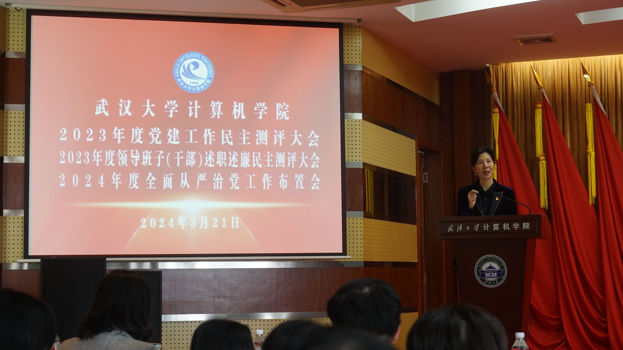 边金鸾同时总结了学院2023年全面从严治党及党风廉政建设工作,并部署2024年全面从严治党任务。她强调,学院党委坚定贯彻从严管党治院方针,坚持严的主基调不动摇。全院教职工要强化纪律作风意识,用好用足科研管理政策,落实意识形态与保密工作要求,守牢师德底线和纪律红线,营造风清气正的发展环境和育人氛围,推动学院高质量发展。