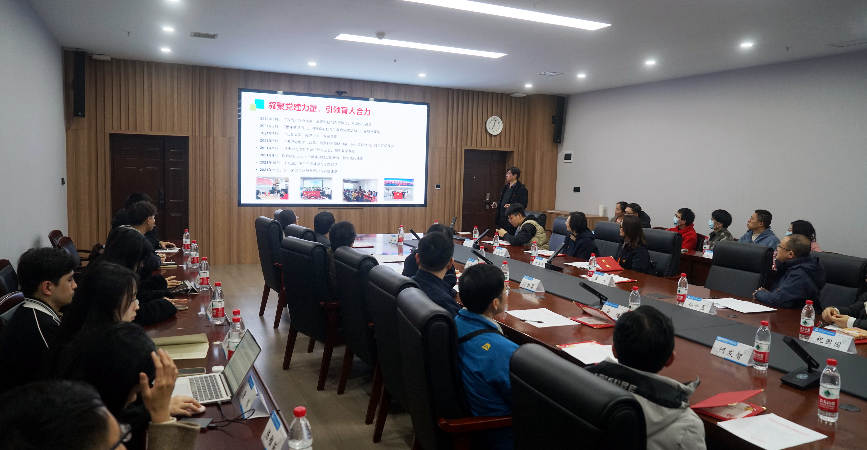 高卫松首先介绍了党建导师设置情况、以及各研究生党支部构成情况。高卫松表示学院经过调研座谈,为每个研究生党支部选聘1名具有一定政治理论水平、学术水平及学生工作基础的党建导师,旨在以师生共建推进支部建设,以师生共建推进人才培养。这一举措是学院在研究生党支部建设中的创新探索,也是牢牢把握立德树人根本任务、聚焦党支部建设、培育时代新人的具体工作实践。