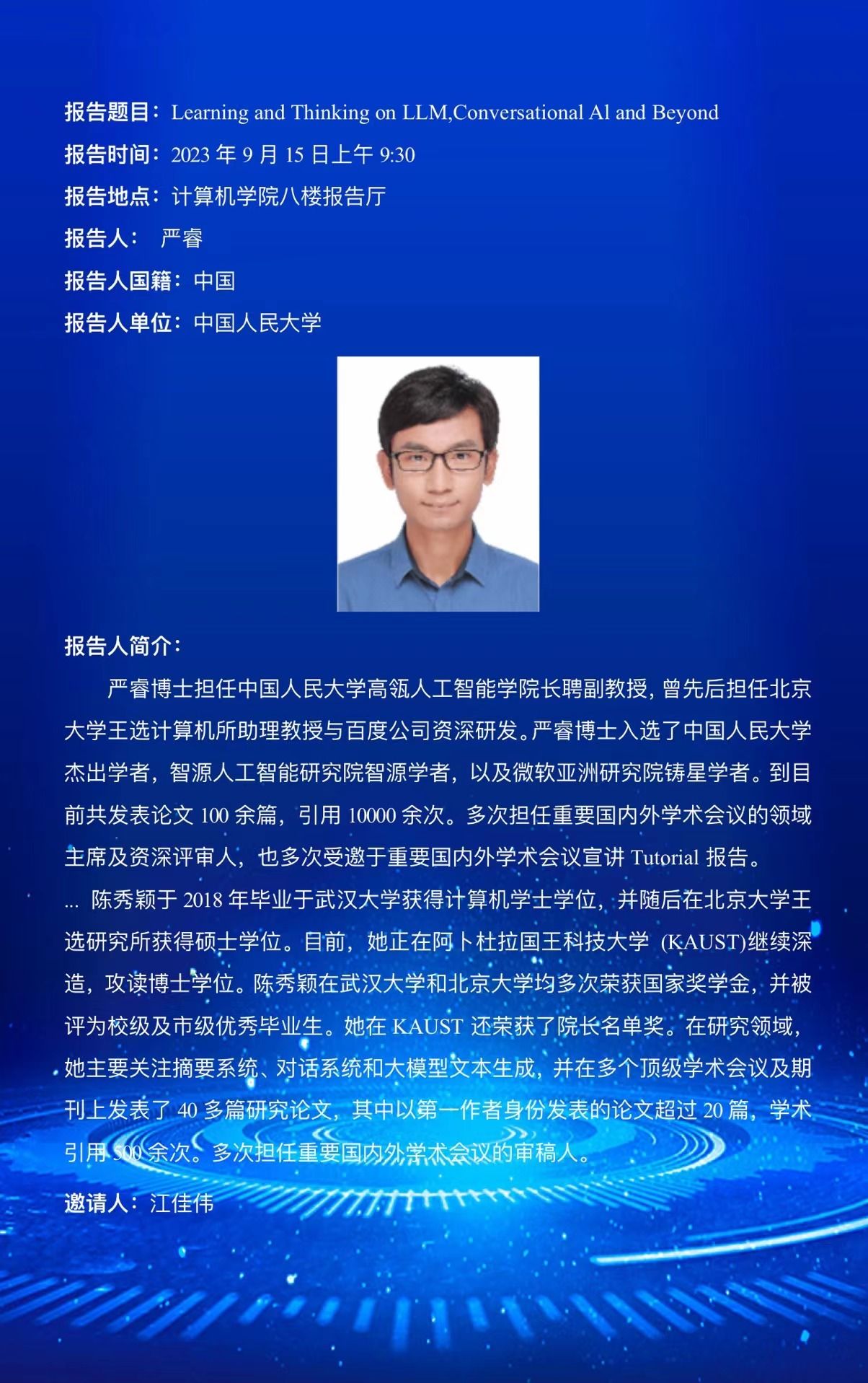 报告题目:Learning and Thinking on LLM, Conversational Al and Beyond