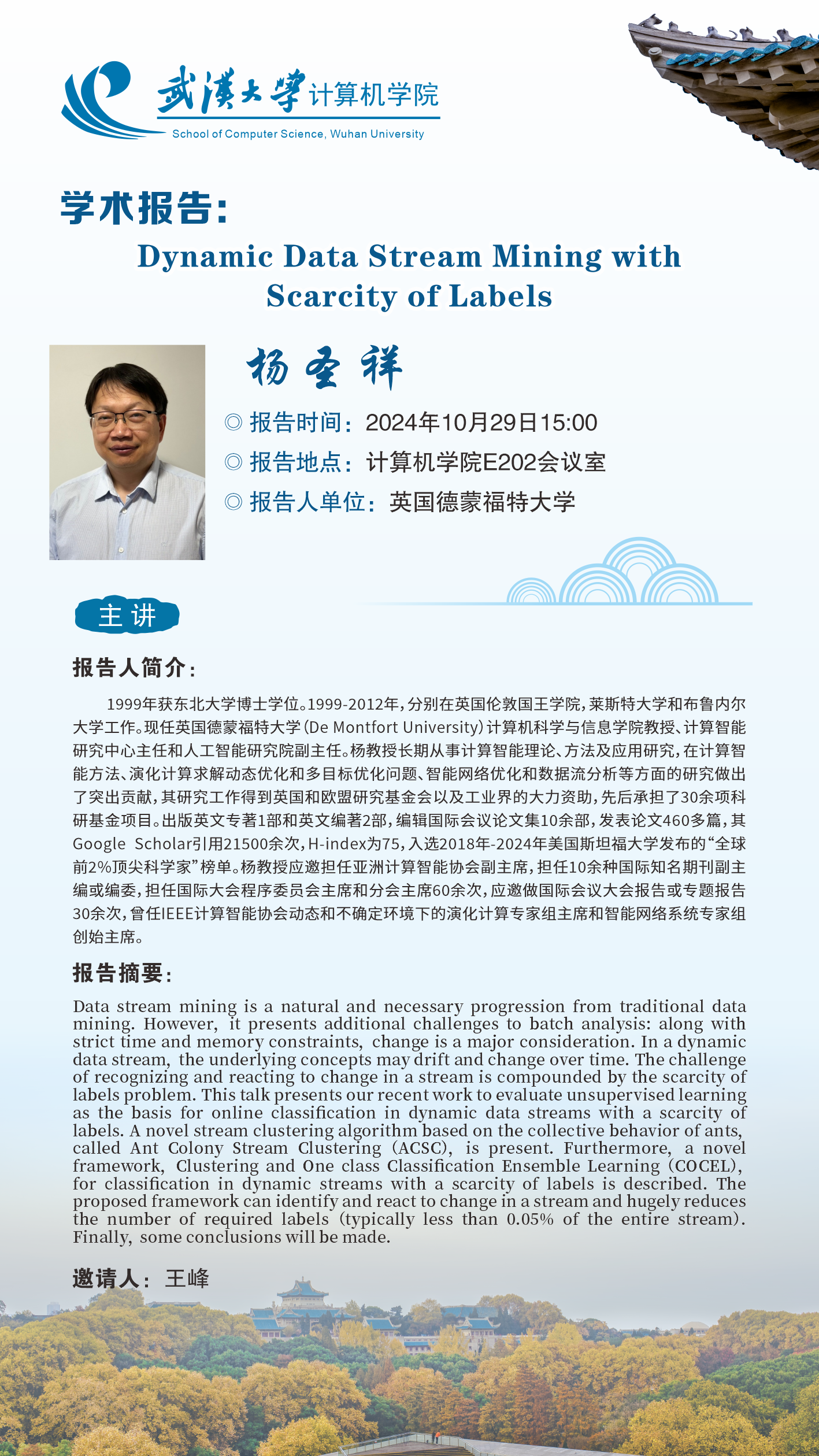 报告题目:Dynamic Data Stream Mining with Scarcity of Labels