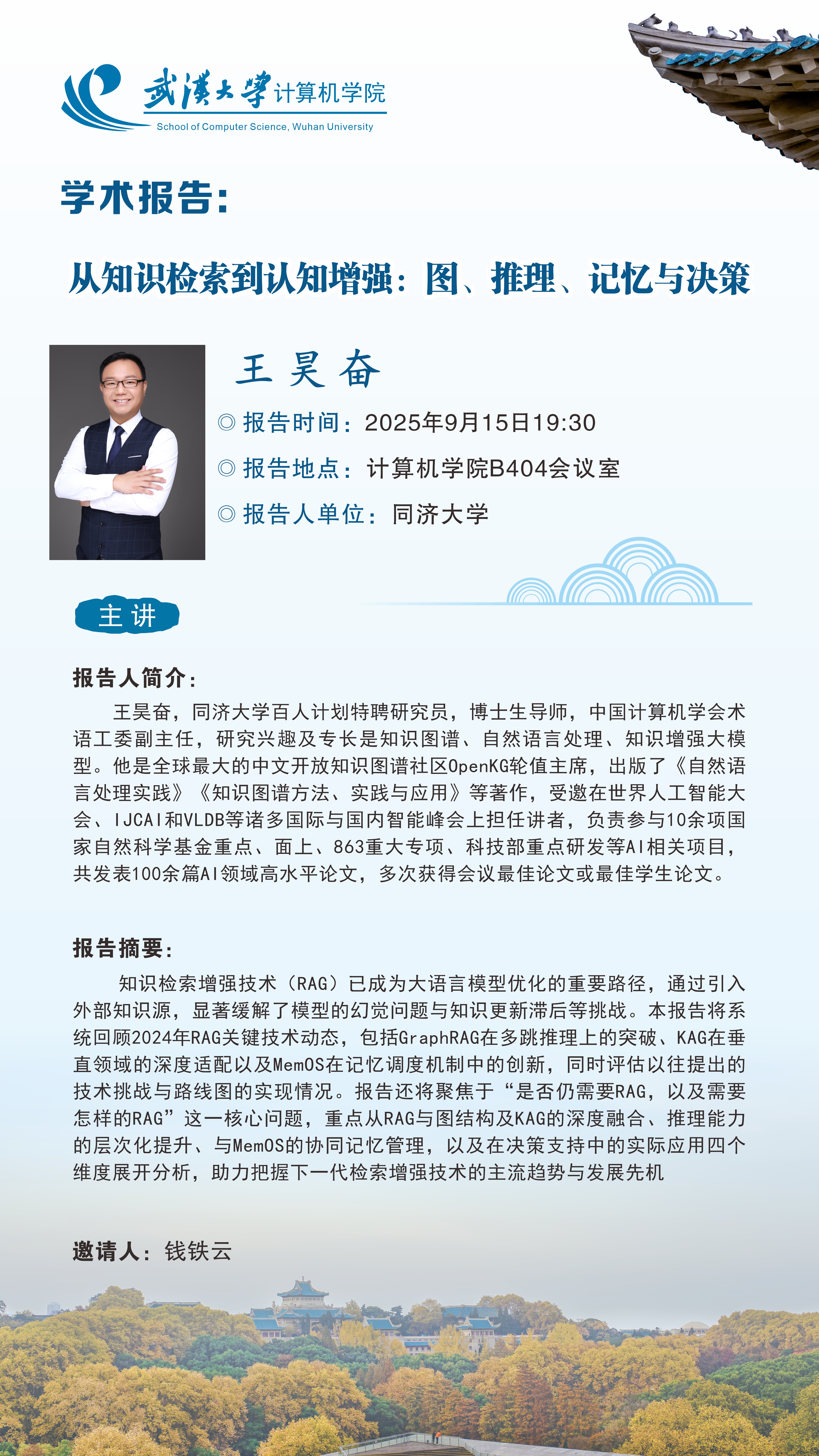 报告题目:从知识检索到认知增强:图、推理、记忆与决策