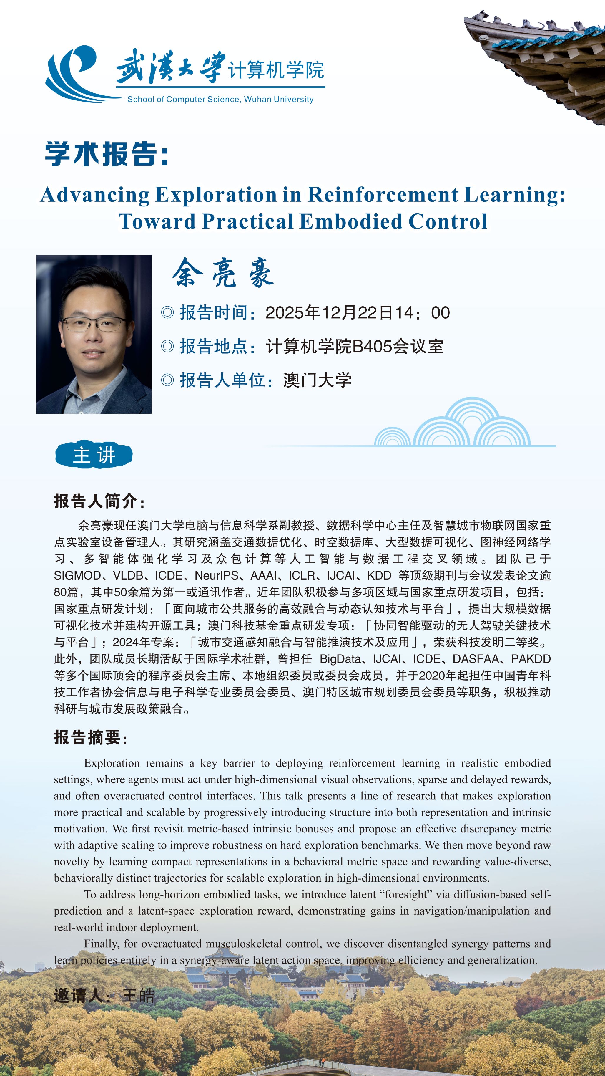 报告题目:Advancing Exploration in Reinforcement Learning: Toward Practical Embodied Control