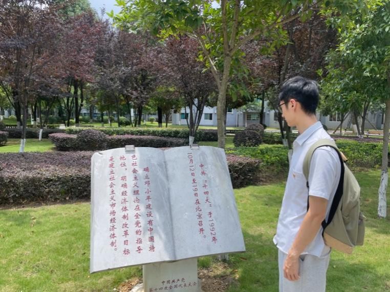 支部党员张泽锟同志在“红色印迹”驻足学习