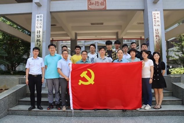 本次红色研学首站,支部成员前往黔南民族师范学院。支部党建导师李兵教授以“新时代高校IT教学与科研”为主题作报告,从时事政治、学科前沿等角度分享了“新时代、新工科、新IT”的内核与发展变化,并针对计算机学科人才培养提出了“两观四力”核心素养的软件跨界人才的育人构思。随后,支部党员及党建导师团队与黔南民族师范学院师生进行了深入交流与讨论。