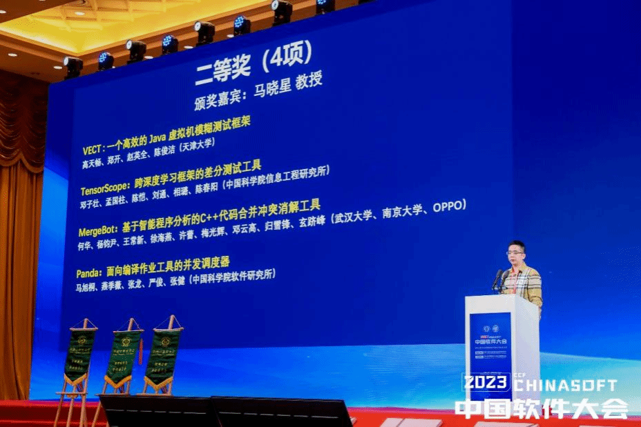 在会议上,支部党员和党建导师不仅是积极的求知者,更是活跃的参与者和创新者。在“软件教学案例交流与竞赛”中,玄跻峰、谢晓园、何璐璐和彭蓉老师的“单元测试生成工具构建:软件测试课程渐进式教学案例”荣获一等奖,位列第一。在“AIGC下的软件工程新范式论坛”中,谢晓园老师的学术报告“AI时代下的软件多缺陷隔离定位技术”引发高度关注。在“软件研究成果原型系统竞赛颁奖”中,由玄跻峰老师和何华等支部党员参与设计的“MergeBot:基于智能程序分析的C++的代码合并冲突消解工具”荣获二等奖。这些荣誉不仅是对支部党员和导师们辛勤付出的认可与鼓励,更坚定了支部成员在软件工程领域刻苦耕耘、学有所成的决心和信心。