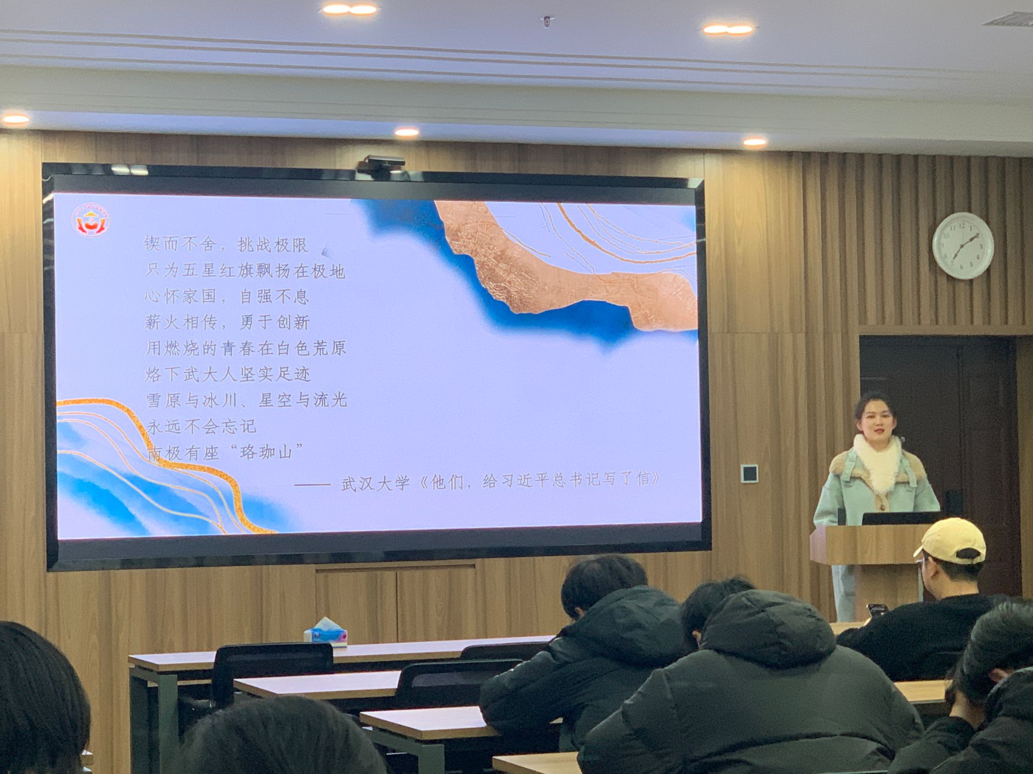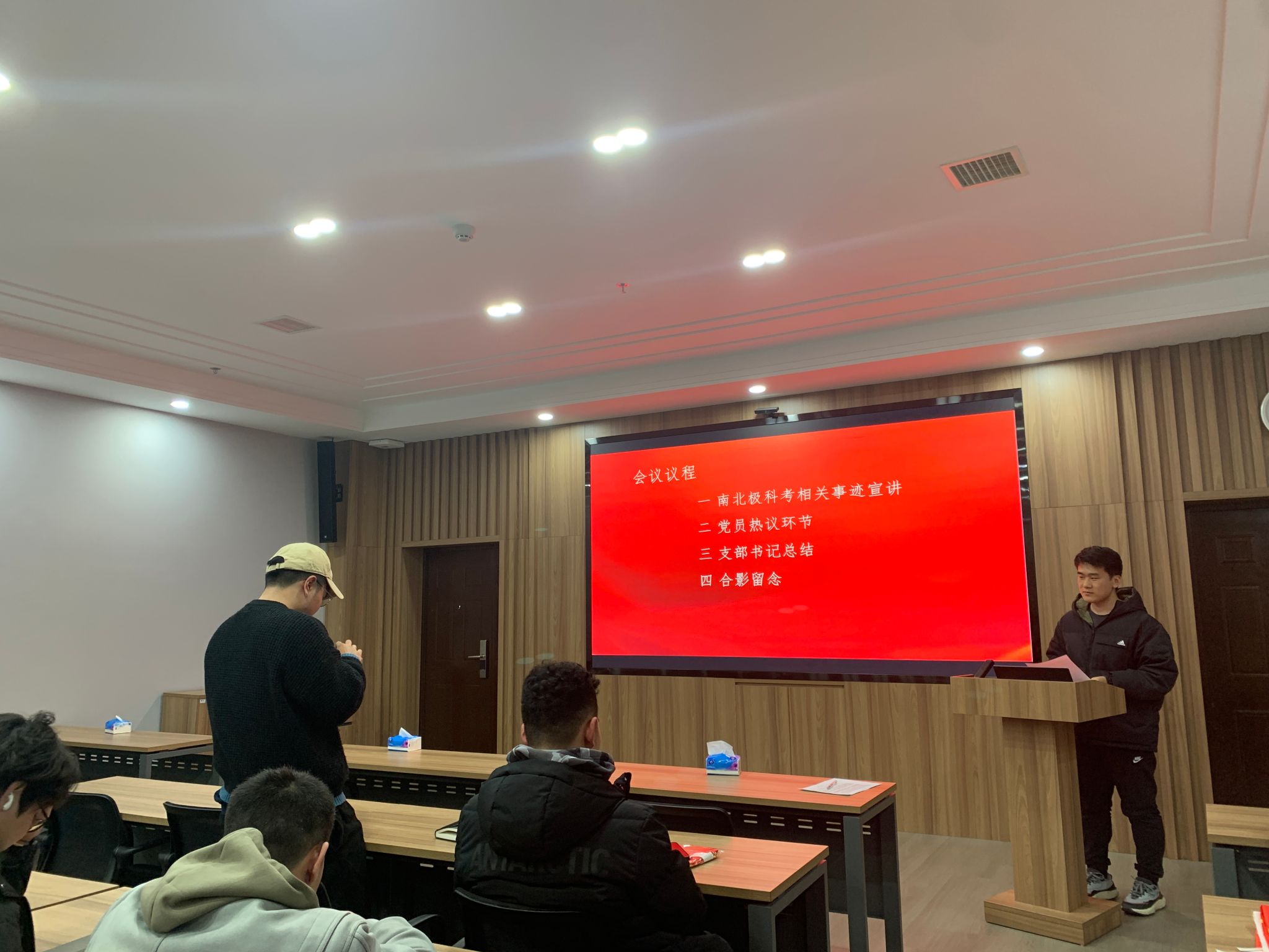 科研团队在中国极地科考中的卓越贡献。她的讲解不仅是对南北极科考的真实揭示,更是对青年学子探索未知、学以报国的激励与启迪,让与会党员对科考工作有了更全面、更深入的了解。支部成员深刻领略到南北极科考科研工作者的辛勤付出和卓越成就,对科考工作有了更为具体而深刻的认知,激发了大家对科学探索和环境保护的无限热忱与责任感。