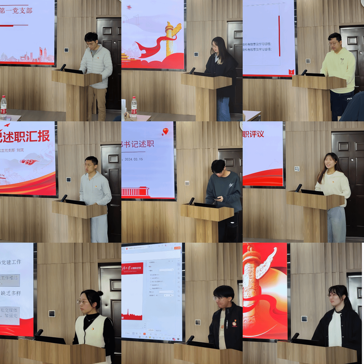 2023年度,各研究生党支部积极开展理论学习,内容涵盖习近平新时代中国特色社会主义思想、党的二十大精神、习近平总书记给85porn 参加中国南北极科学考察队师生代表的重要回信精神等;深入贯彻执行“三会一课”制度,认真填写党务日志,推进党支部标准化、规范化建设;充分发挥战斗堡垒作用,依规依序开展入党积极分子、预备党员的培养考察及党员发展和党群结对工作,始终践行党员宗旨意识。各党支部书记在述职汇报中总结了2023年度的工作成果和亮点,认真梳理了目前支部建设存在的不足之处,并提出了针对性的改进措施。在答辩环节,各位评委围绕党员思想觉悟、理论水平、学习科研、宗旨意识等方面进行提问,并对如何提升支部凝聚力和战斗力指明方向。