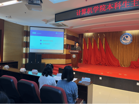 在主题党日活动中,本科生党总支纪检委员作主题报告分享,分别从网络行为规范、学术诚信两个方面,对全体学生党支部书记、支部委员、部分党员代表、入党积极分子代表进行纪律解读和案例警示,引导党员骨干心存敬畏、行有所止,坚守纪律与诚信底线,并发挥榜样示范作用,在本科生群体中形成知规范、守纪律的良好氛围。