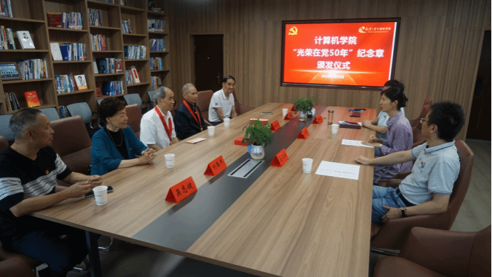 在随后座谈交流中,获得纪念章的林子禹老师、徐贵钢老师发表感言,表示能够获得这枚沉甸甸的纪念章,非常激动感恩,这份荣誉是党组织的关怀,虽退休多年不在岗,但时刻关心学校学院的发展,希望学院在高水平科技自立自强方面为国家多做贡献。与会退休老师表示,要以获得纪念章的老党员为榜样,学习他们对党忠诚、担当奉献精神,做到一贯表现良好,争取将来佩戴上光荣的纪念章。