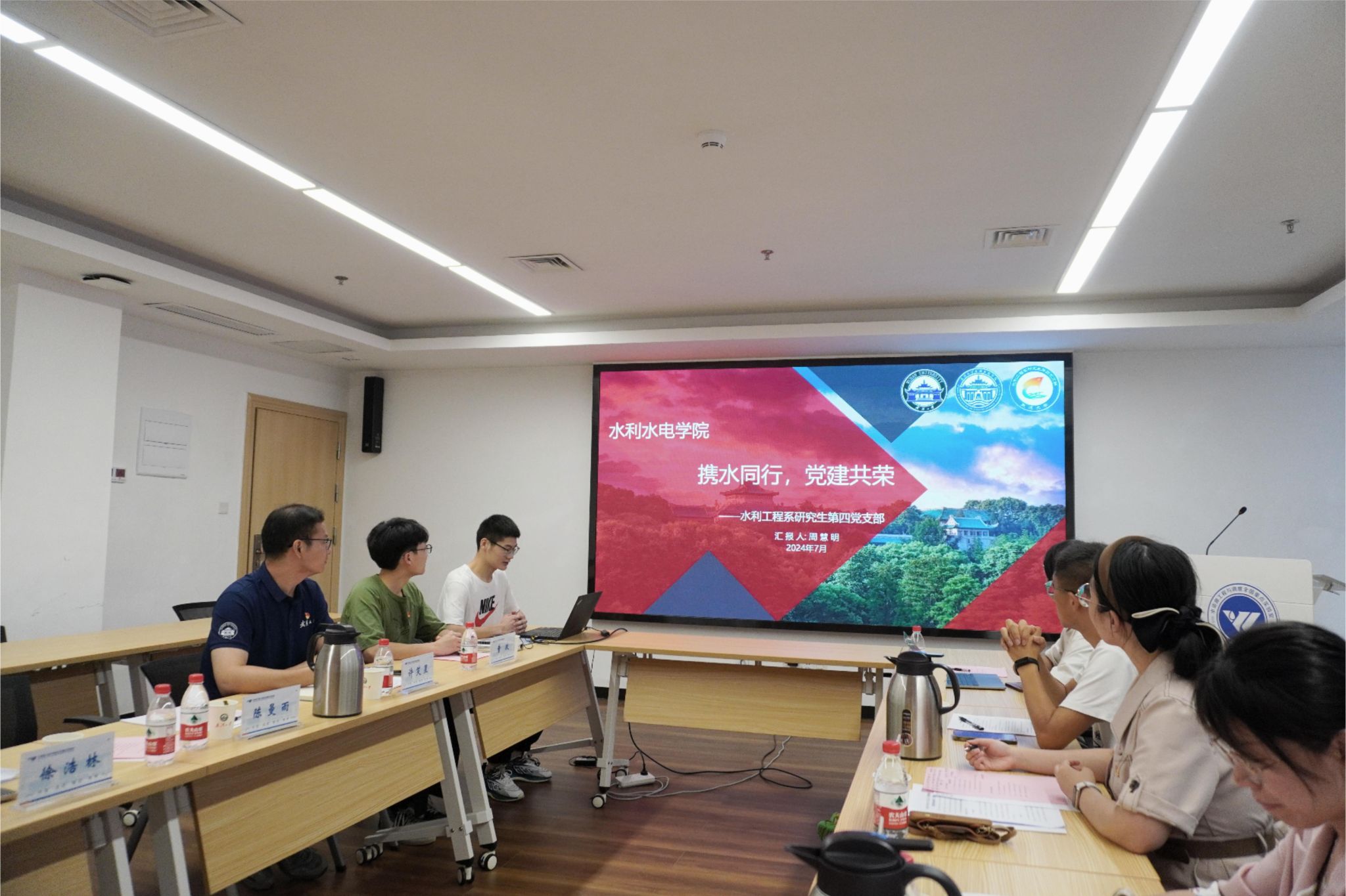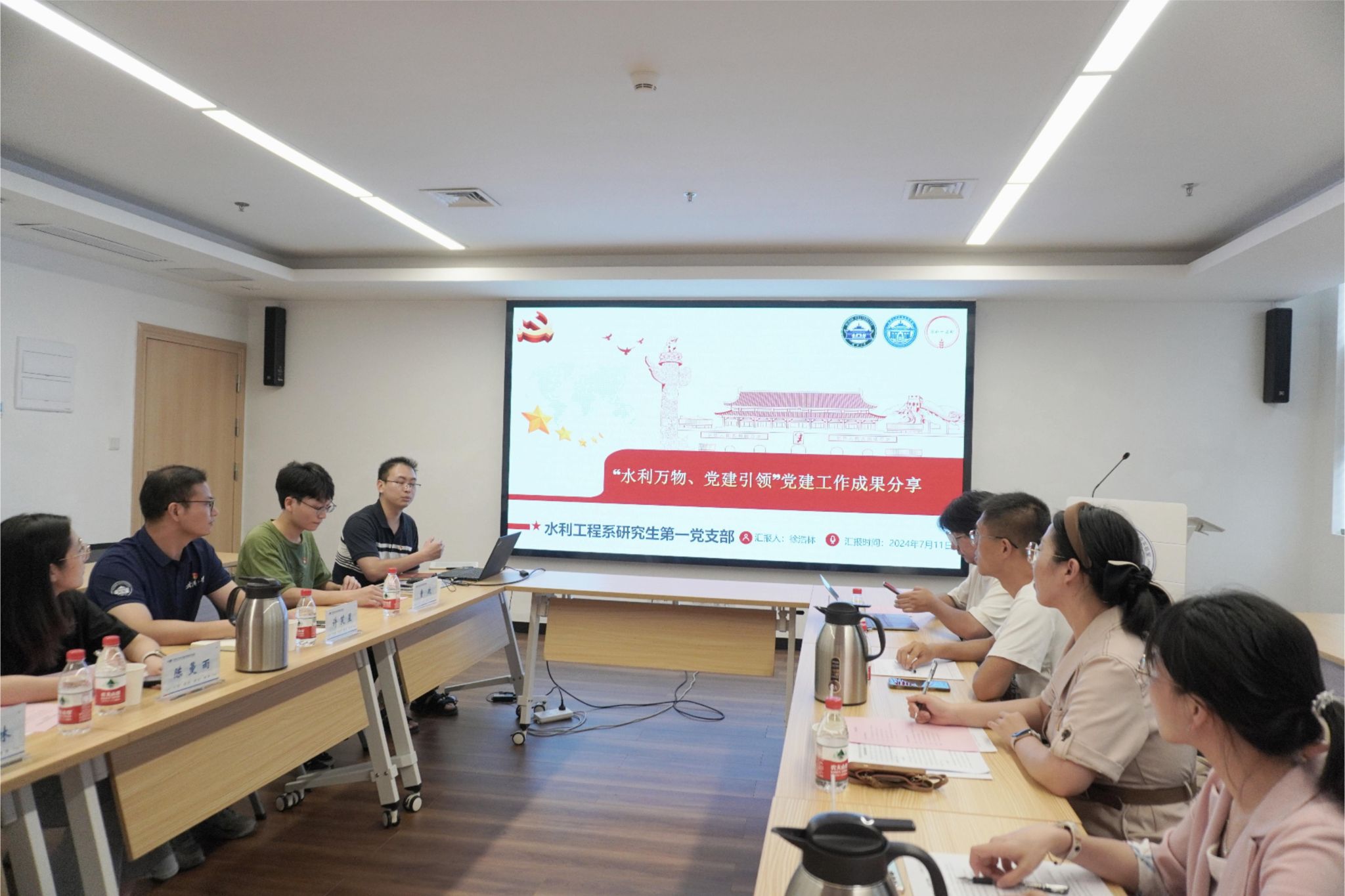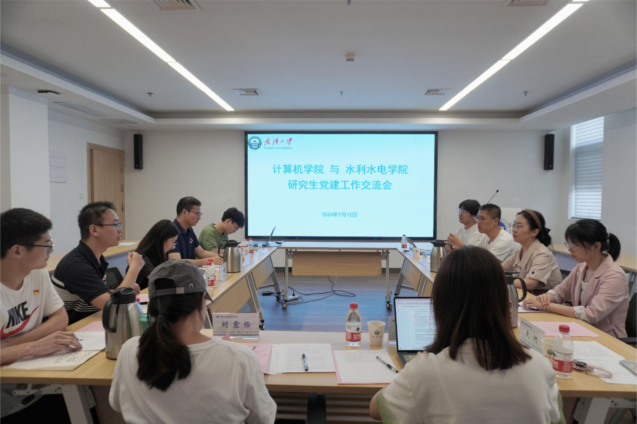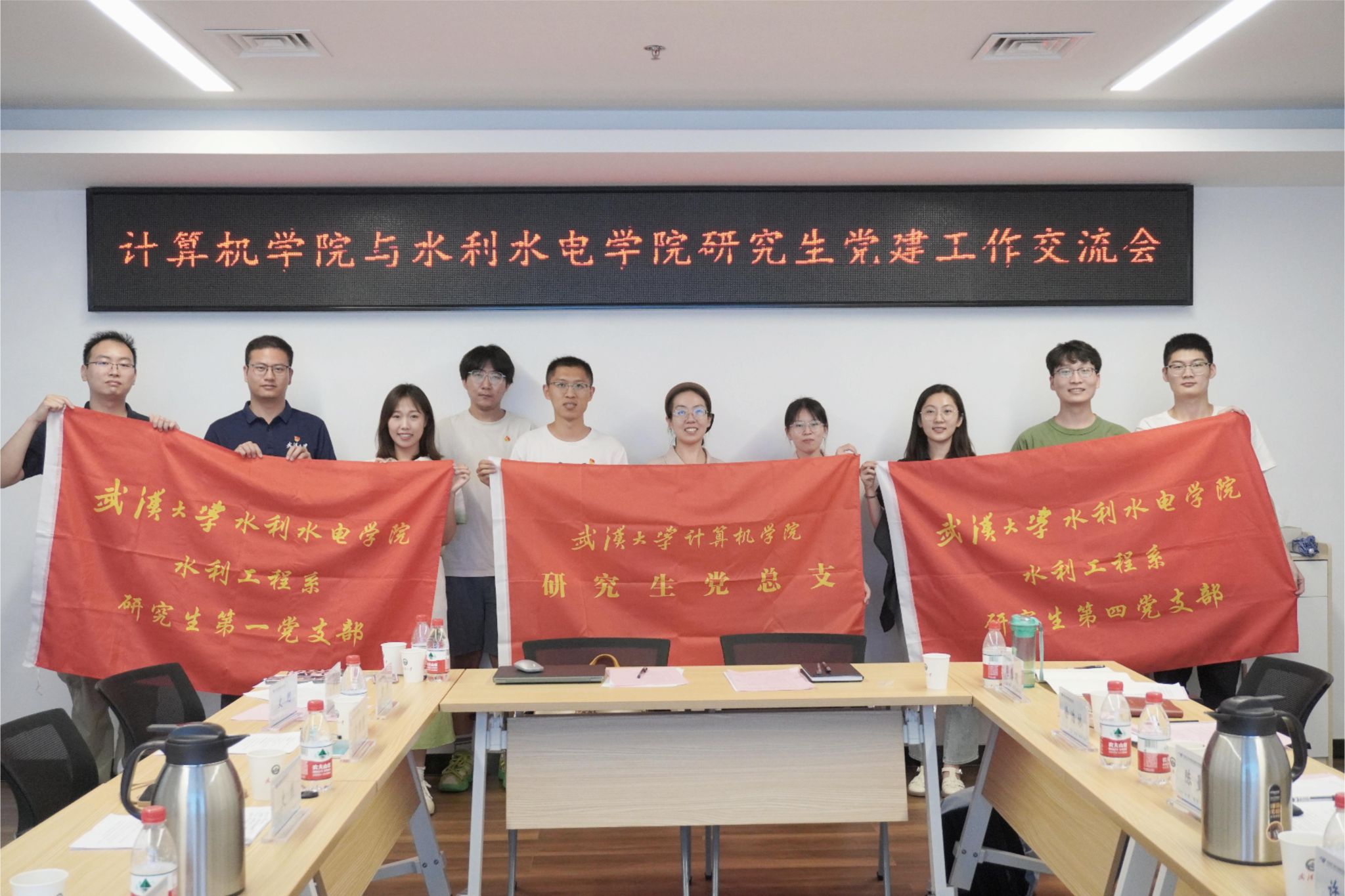 研究生党总支书记、研究生辅导员史然,党总支学生副书记刘笑,党总支宣传委员哲婷,智软服务实验室研究生党支部书记南思宇,智能感知实验室研究生第二党支部书记史珂,软件工程系研究生第二党支部书记李国菁与水利水电学院党委组织员、研究生辅导员陈曼雨,研究生辅导员许笑星,水利水电学院研究生党总支原学生副书记童政,党总支宣传委员刘紫怡,水利工程系研究生第一党支部书记徐浩林以及水利工程系研究生第四党支部书记周慧明共同参与了此次交流活动。