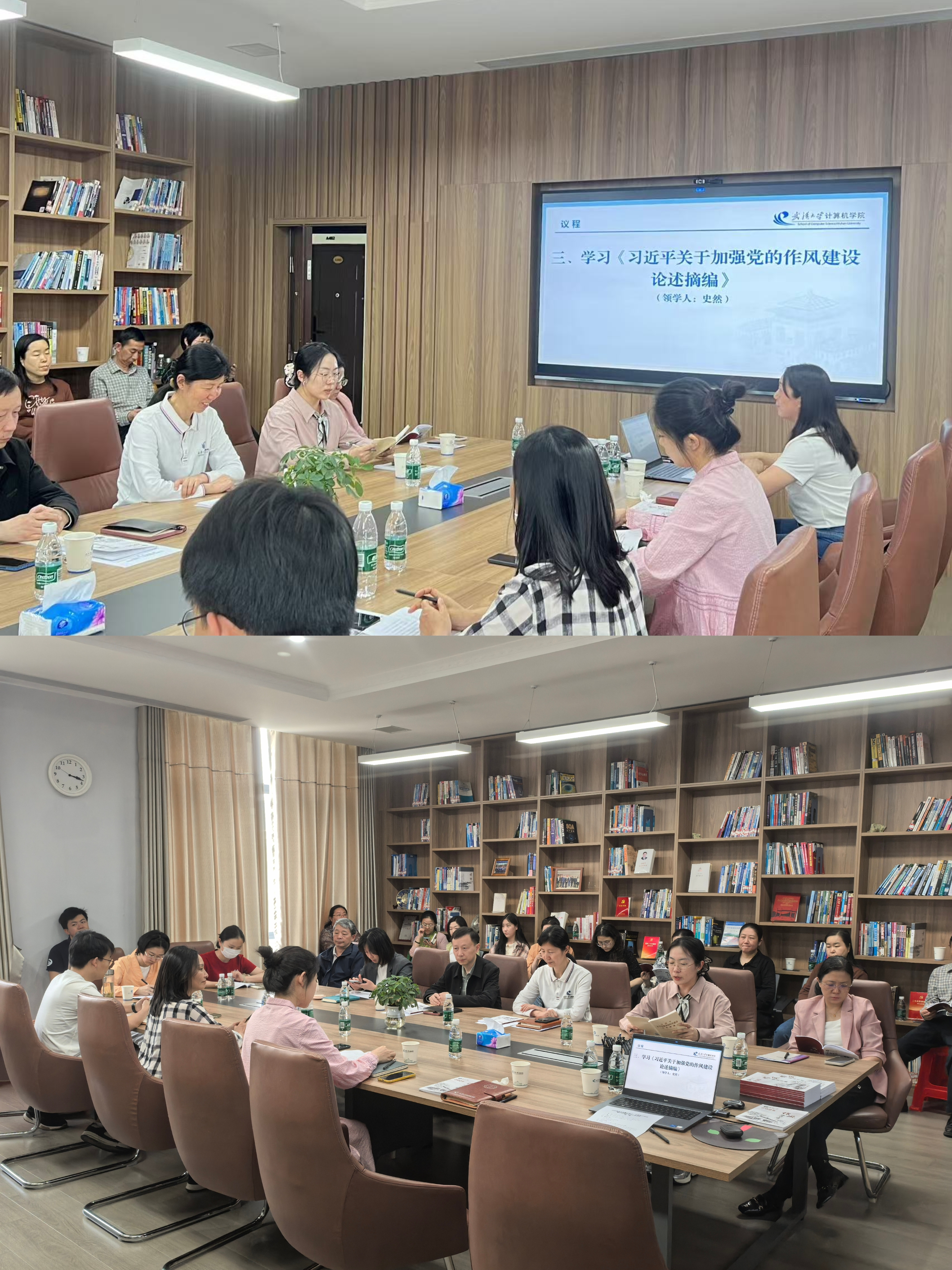 党支部成员史然领学《习近平关于加强党的作风建设论述摘编》。她重点剖析《论述摘编》部分内容,结合当下社会发展的新态势、学院面临的新挑战生动解读了“作风建设永远在路上”的重要理念,强调管理服务干部要经常自查自省,及时发现和纠正存在的问题,在抓深、抓细、抓实上下功夫,推动作风建设不断向纵深发展。