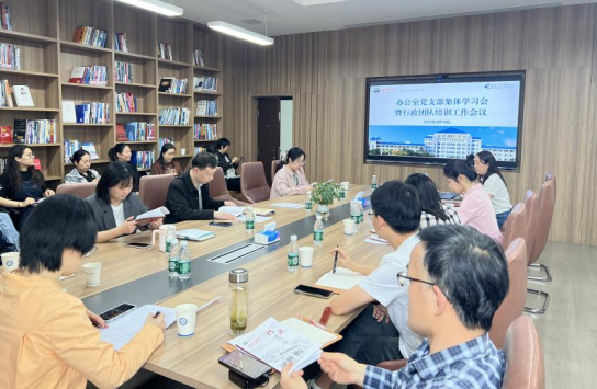 办公室党支部在A403会议室及工创中心数智教育展厅召开集体学习、主题党日活动暨党政管理人员学习培训活动。办公室党支部成员和全体党政管理人员参加了学习会。会议由办公室党支部副书记张文俊主持。