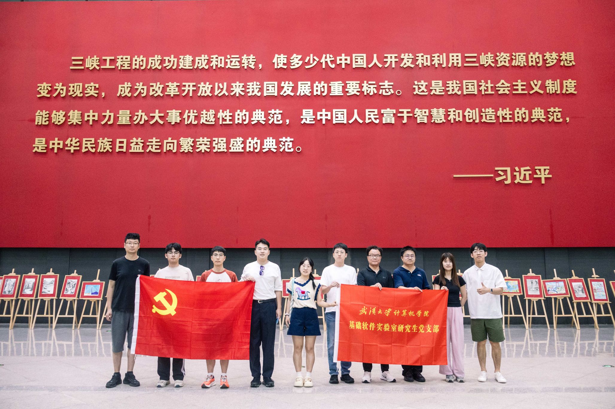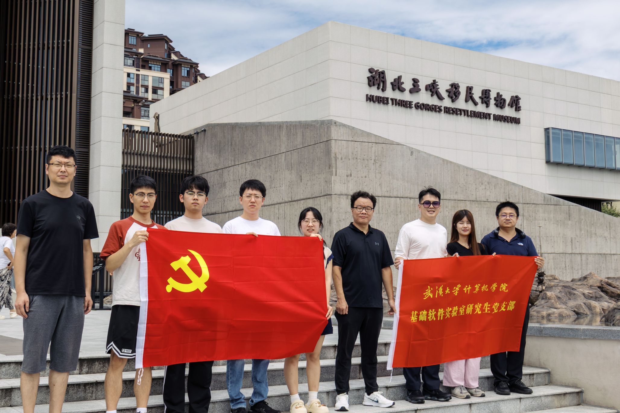 为深入学习贯彻习近平新时代中国特色社会主义思想和党的二十大精神,落实党员党性教育、爱国主义教育与实践锻炼要求,8月13日至14日,基础软件实验室研究生党支部十余名成员在85porn 副院长玄跻峰、党支部书记徐海燕带领下赴革命老区宜昌,开展“传承红色基因 弘扬革命精神”主题党日实践活动。实践团通过实地探访三峡工程、宜昌烈士陵园与宜昌大撤退纪念园等红色教育基地,引导支部党员深刻领会新时代中国共产党人的初心使命,切身感受国家重大工程建设的伟大成就与革命先烈的团结抗战精神,在历史与现实的交融中进一步坚定理想信念,提升党性修养,为推动科技创新和服务国家发展凝聚奋进力量。