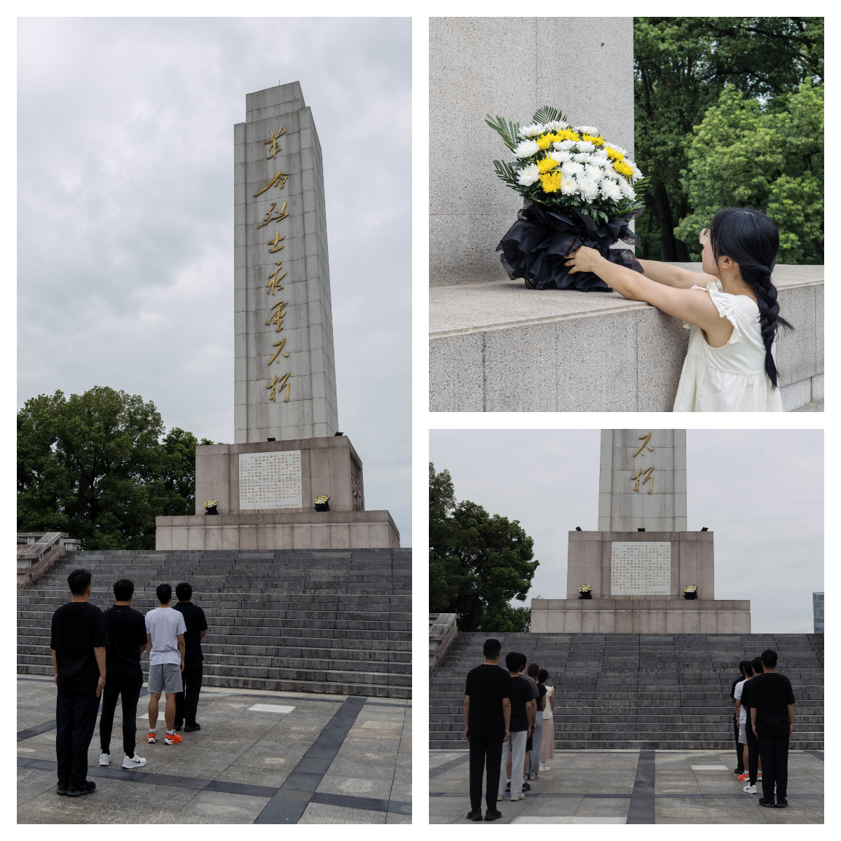 次日上午,实践团怀着崇敬的心情来到宜昌烈士陵园。陵园内松柏苍翠,庄严肃穆。在革命烈士纪念碑前,全体党员整齐列队,肃立默哀并献上鲜花,向为民族独立和人民解放事业英勇献身的革命先烈们致以最崇高的敬意。