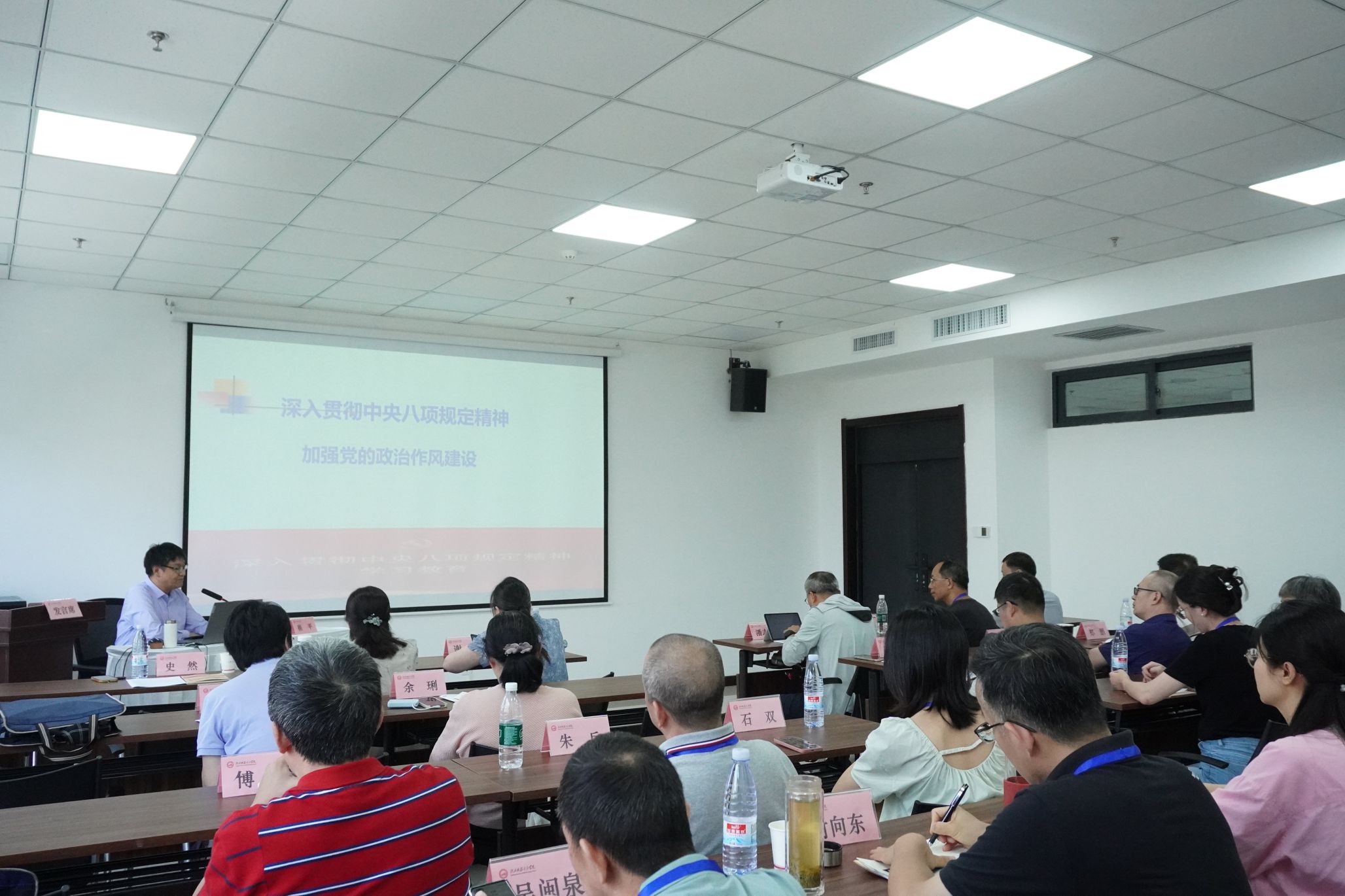 在《深入学习习近平总书记关于弘扬延安精神的重要论述——延安精神及其新时代价值》专题教学中,延安大学杨延虎教授系统梳理延安精神的四重维度:以“坚定正确政治方向”为灵魂,以“解放思想、实事求是”为精髓,以“全心全意为人民服务”为核心,以“自力更生、艰苦奋斗”为特征。在《深入贯彻中央八项规定精神,加强党的政治作风建设》专题党课中,崔平教授立足党纪学习教育实践,通过典型案例剖析,系统解读中央八项规定精神的核心要义,强调党员干部要常修“四学”之功——以学铸魂固根本、以学增智强本领、以学正风树形象、以学促干创实绩,永葆清正廉洁政治本色,筑牢拒腐防变思想防线。