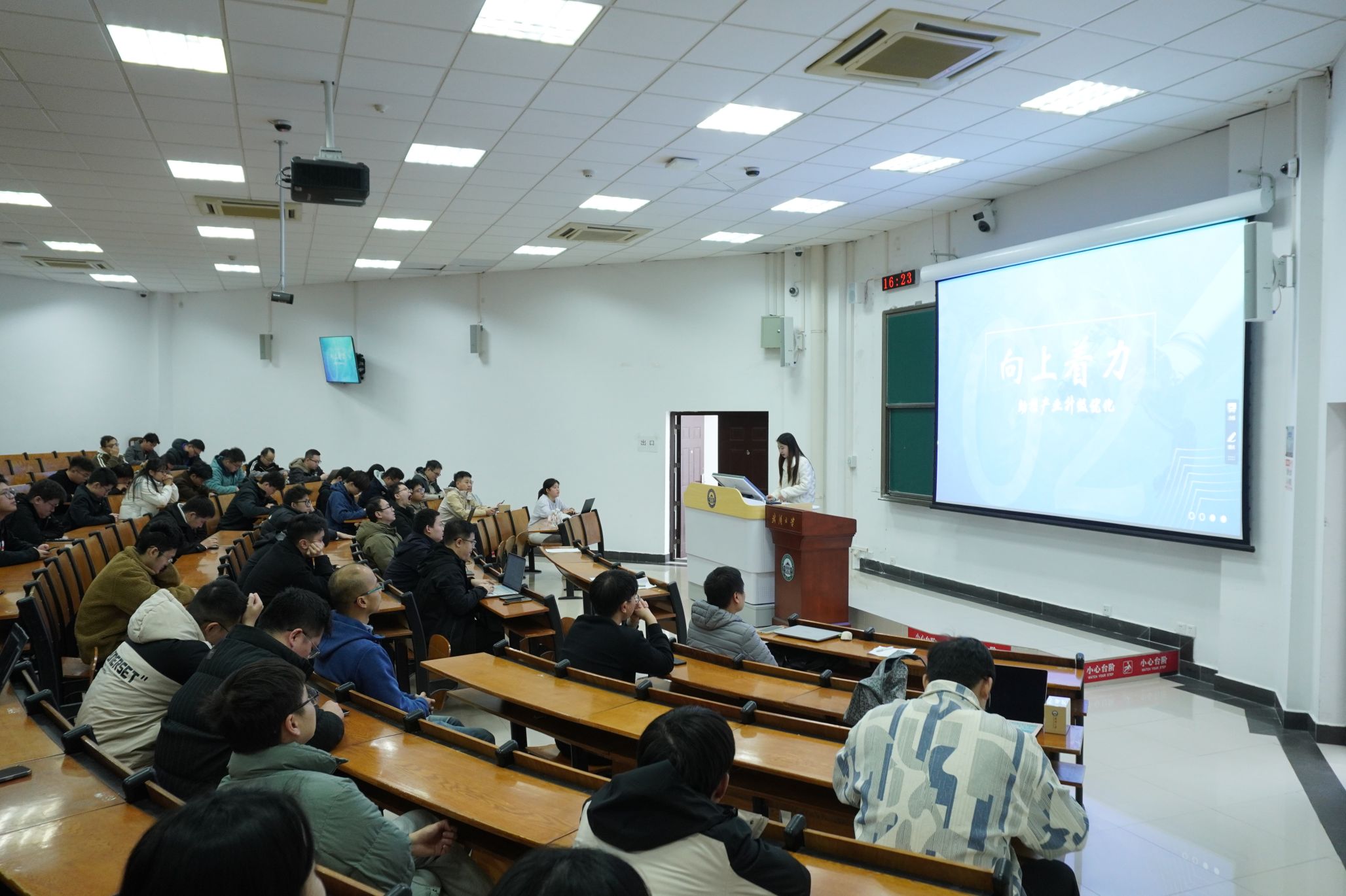 张廷讲师则以《凝心聚力,向“新”而行》为题,围绕“新质生产力”展开系统解读。她从“读懂新质生产力的核心内涵”入手,结合全会“加快高水平科技自立自强”的部署要求,阐释了新质生产力以科技创新为核心驱动力的本质特征;随后聚焦“发展新质生产力助推产业升级优化”,分析了人工智能、数字技术等前沿领域的产业变革机遇;最后以“为新质生产力发展蓄力,激活人才发展活力”为落脚点,为研究生群体提供了“研究方向对接前沿赛道、知识体系适配未来需求、借力国家战略平台成长”的具体路径,鼓励大家将个人科研追求融入国家发展大局。