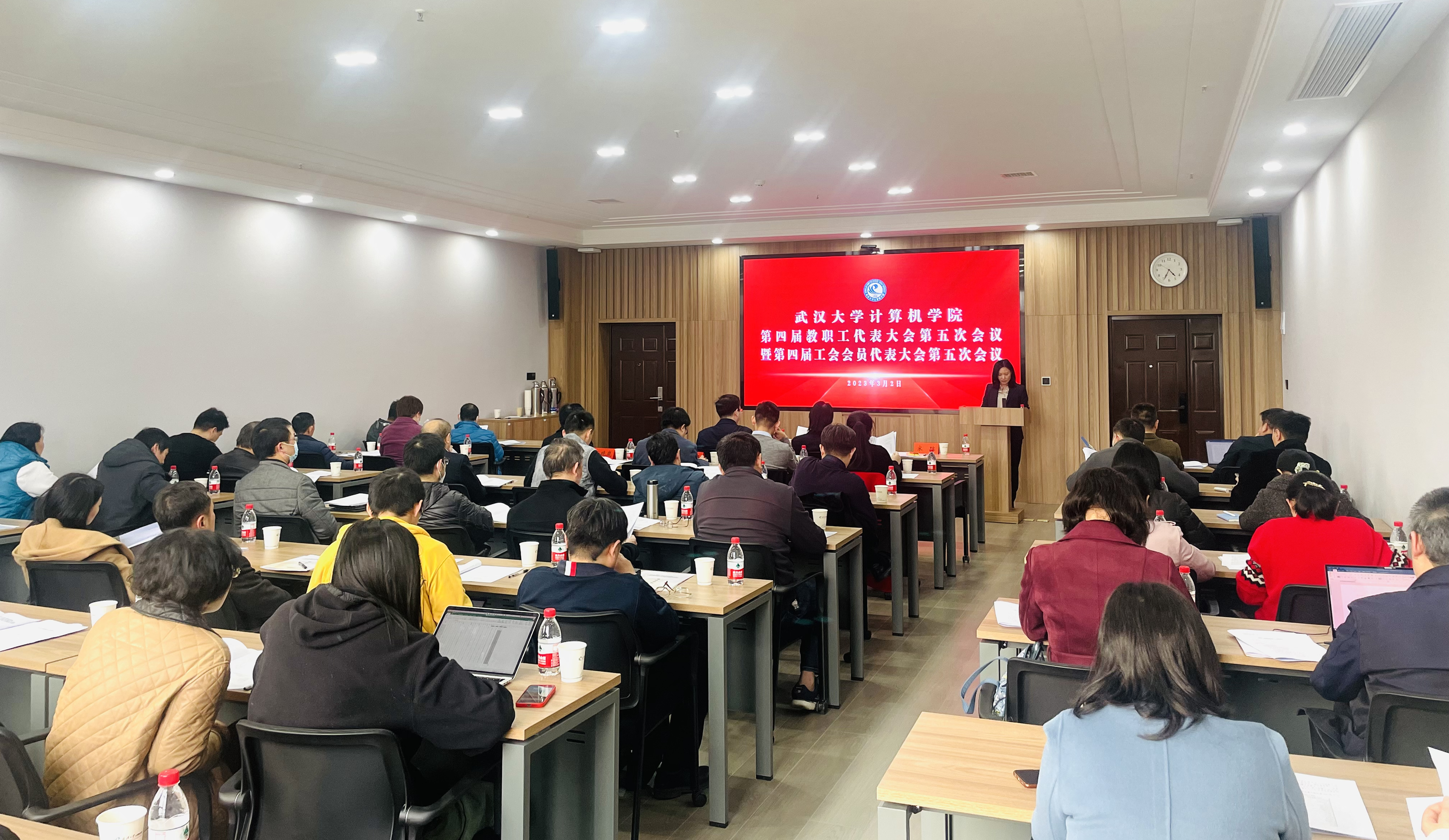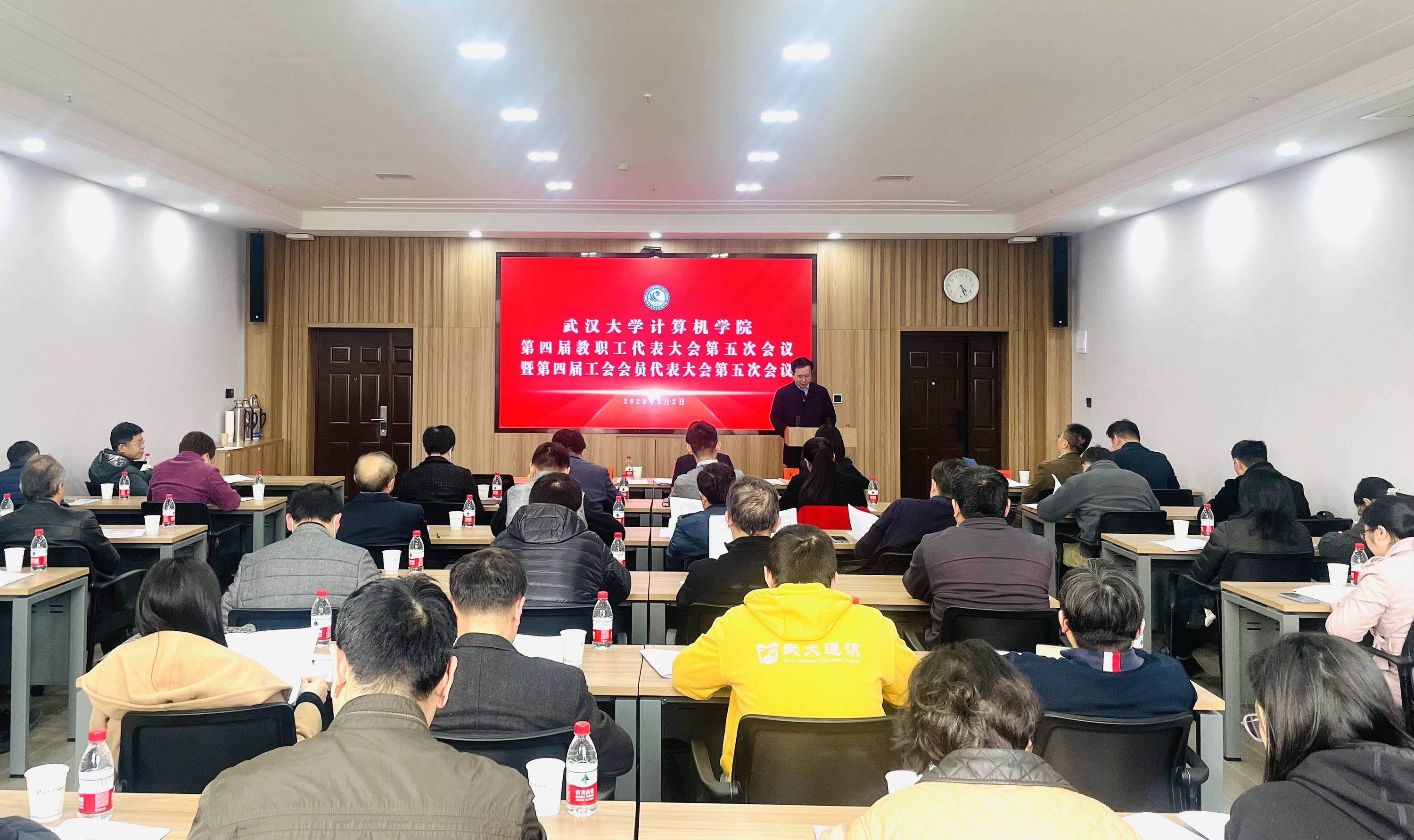 第四届教职工代表大会第五次会议暨第四届工会会员代表大会第五次会议在计算机科学系视频教学中心举行。学院全体院领导以及第四届教代会正式代表和工会会员代表汇聚一堂,共同回顾近一年来老师们不懈奋斗所取得的累累硕果,共展未来,共商学院发展大计。大会由院党委副书记、工会主席高卫松主持。