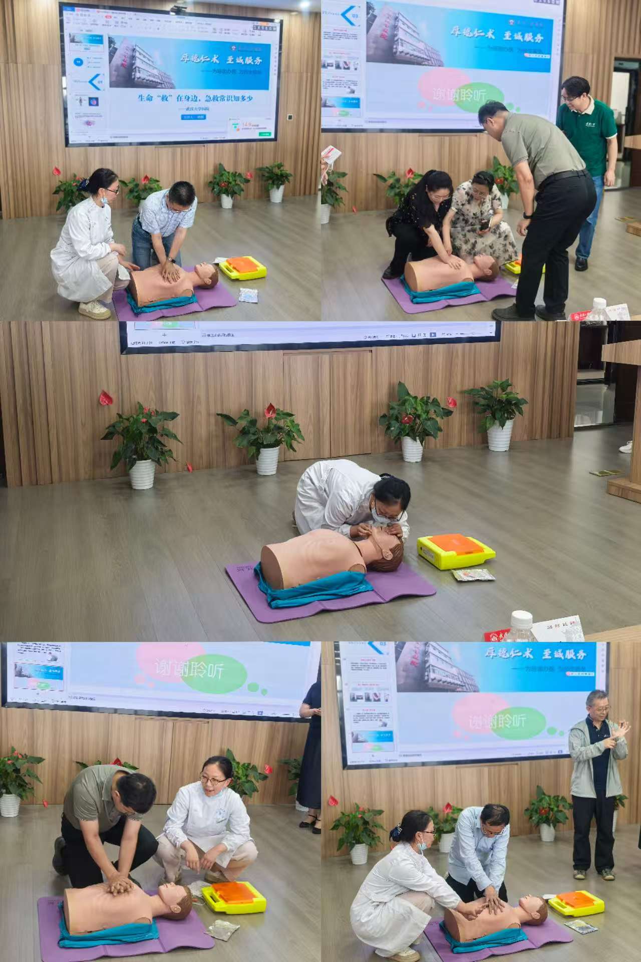 一门诊主任杨柳从心肺复苏对心搏骤停患者的重要性、怎样识别心搏骤停、心肺复苏的流程(C-A-B)、心肺复苏的终止条件以及自动体外除颤器(AED)的正确使用等几个方面进行了详细的讲解。她强调,施救的第一步是要确保现场环境的安全,只有在保证自身安全的前提下,才能更好的救治他人。