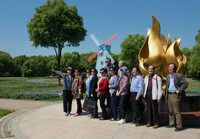组织退休教职工到东西湖郁金香主题公园进行参观游览。