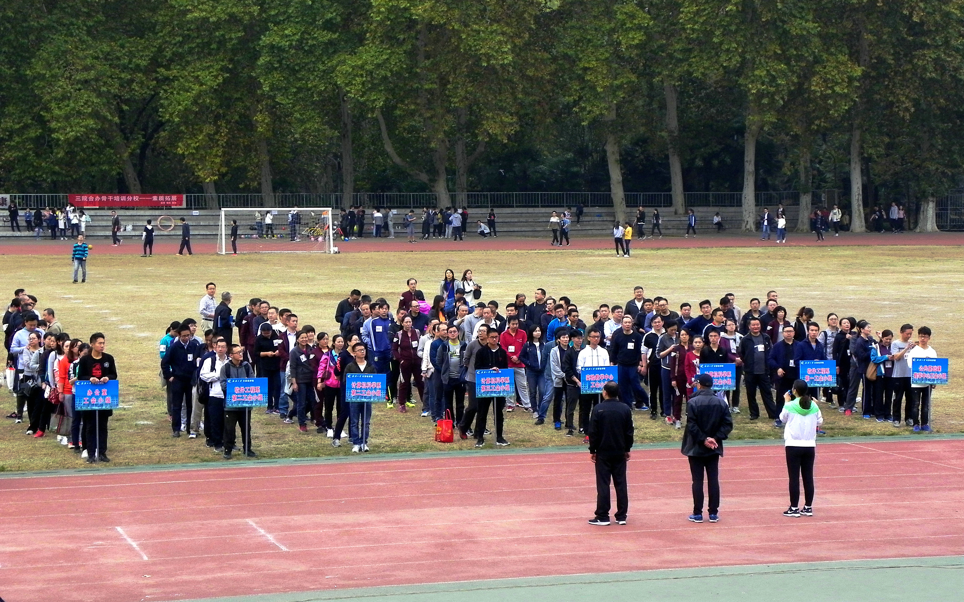 为丰富学院教职工的文化生活,营造团结奋进、拼搏进取的良好氛围,11月4日上午,由学院工会组织的2018年教职工趣味运动会在九一二操场顺利开展,学院党委书记黄治国、副书记胡俊英、副院长杜博、院长助理刘树波与学院8个工会小组的教职工共同参加了比赛。秋日的九一二操场萦绕着青春的气息,闪耀着活力的光芒。