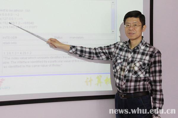 这堂课是张沪寅为本科生开设的课程——《计算机网络管理》。课堂氛围非常轻松。“这个地方大家务必注意,如果只答了前一部分,十分的题我会只给两分哦。”张沪寅一边在黑板上板书,一边和同学们互动,身后传来同学们的笑声。