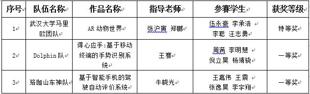 张沪寅、郑鹏老师指导的作品《AR动物世界》以小组第一进入八强并最终获得特等奖,王骞老师指导的作品《得心应手:基于移动终端的手势识别系统》、牛晓光老师指导的作品《基于智能手机的驾驶自动评价系统》分别获得一等奖。