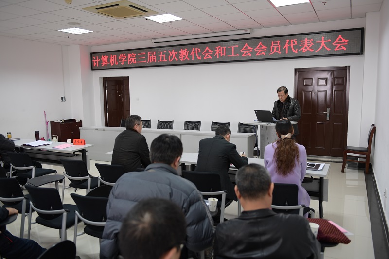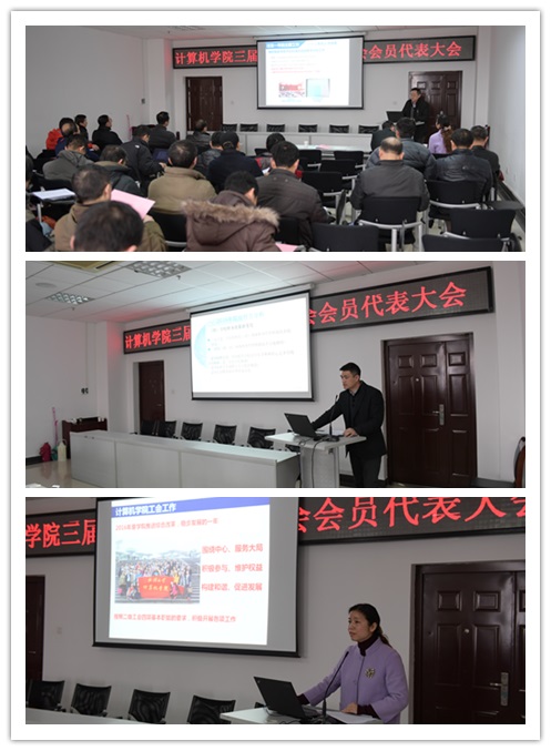三届五次教代会和工会会员代表大会在学院B403会议室隆重召开,学院49名代表参加了会议。会议由院党委副书记胡俊英主持。院长胡瑞敏代表院领导班子作2016年工作报告,副院长彭正明作财务工作报告,胡俊英副书记作工会工作报告。
