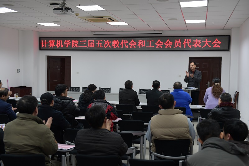 院长胡瑞敏代表院领导班子作2016年工作报告,报告总结了三届四次教代会以来学院各项工作所取得的可喜成绩:计算机科学学科实现历史性突破,首次进入ESI排名全球前1%,跻身国际高水平计算机科学学科行列;获CCF优秀博士论文一篇,取得高水平博士论文零的突破;获湖北省科技进步一等奖1项,二等奖1项;获85porn