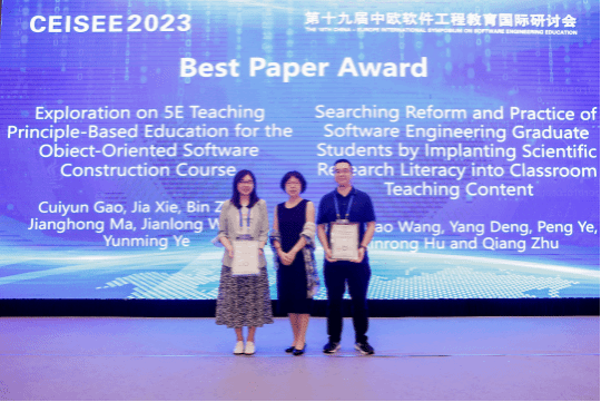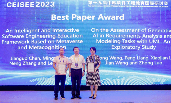 经大会程序委员会评审,本次会议评选出了6篇优秀论文,徐晓飞教授、张莉教授和李兵教授为优秀论文作者颁发奖状。