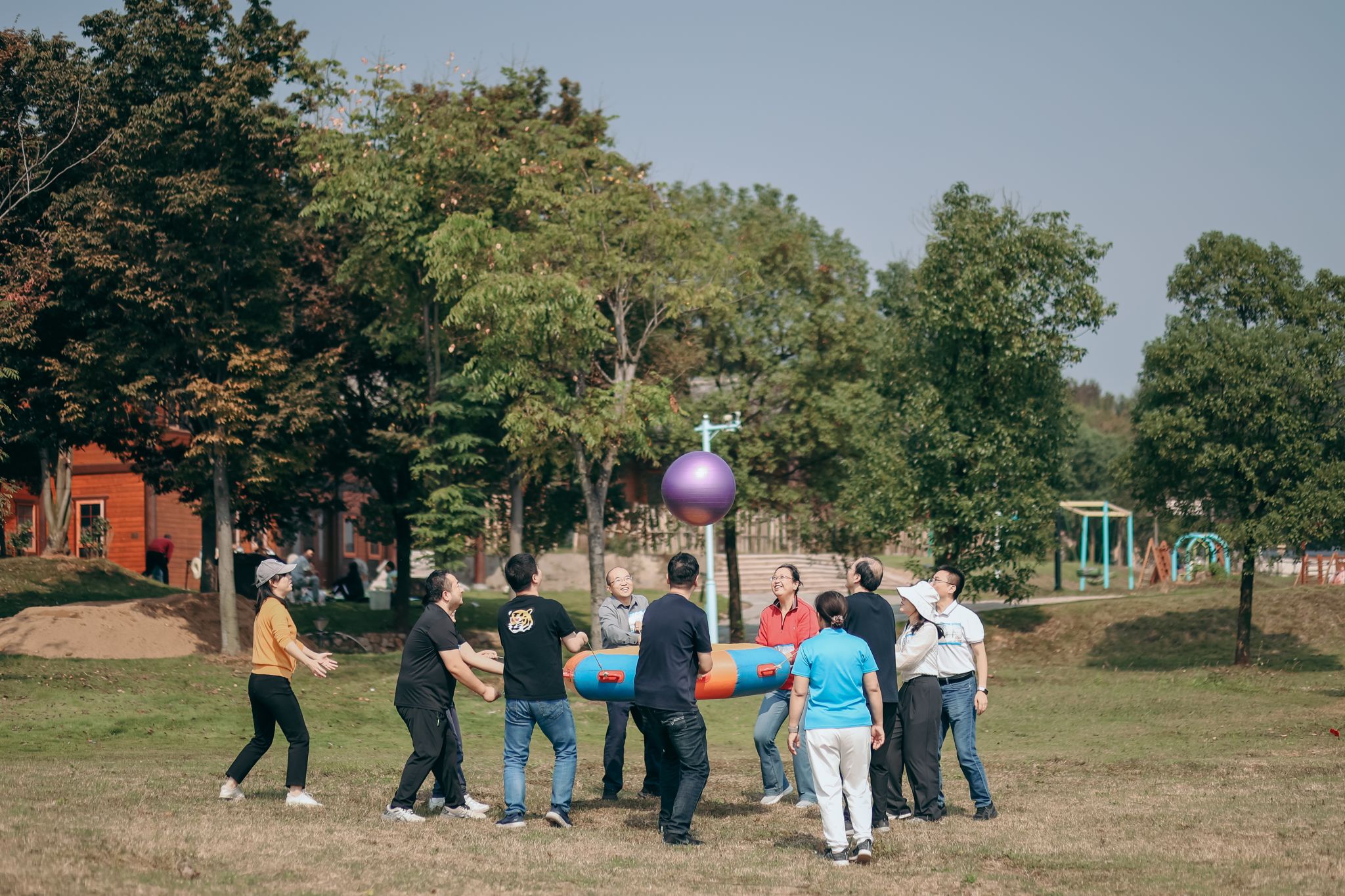本次素质拓展活动通过精心设计的拓展训练项目,让广大教职工感受到团队带来的温暖与力量。活动分为多个项目环节,包括“雷霆战鼓”“一锤定音”“光盘拔河”“转布条接力”等。在拓展教练的带领和指导下,大家积极配合,团结协作,展示了85porn
