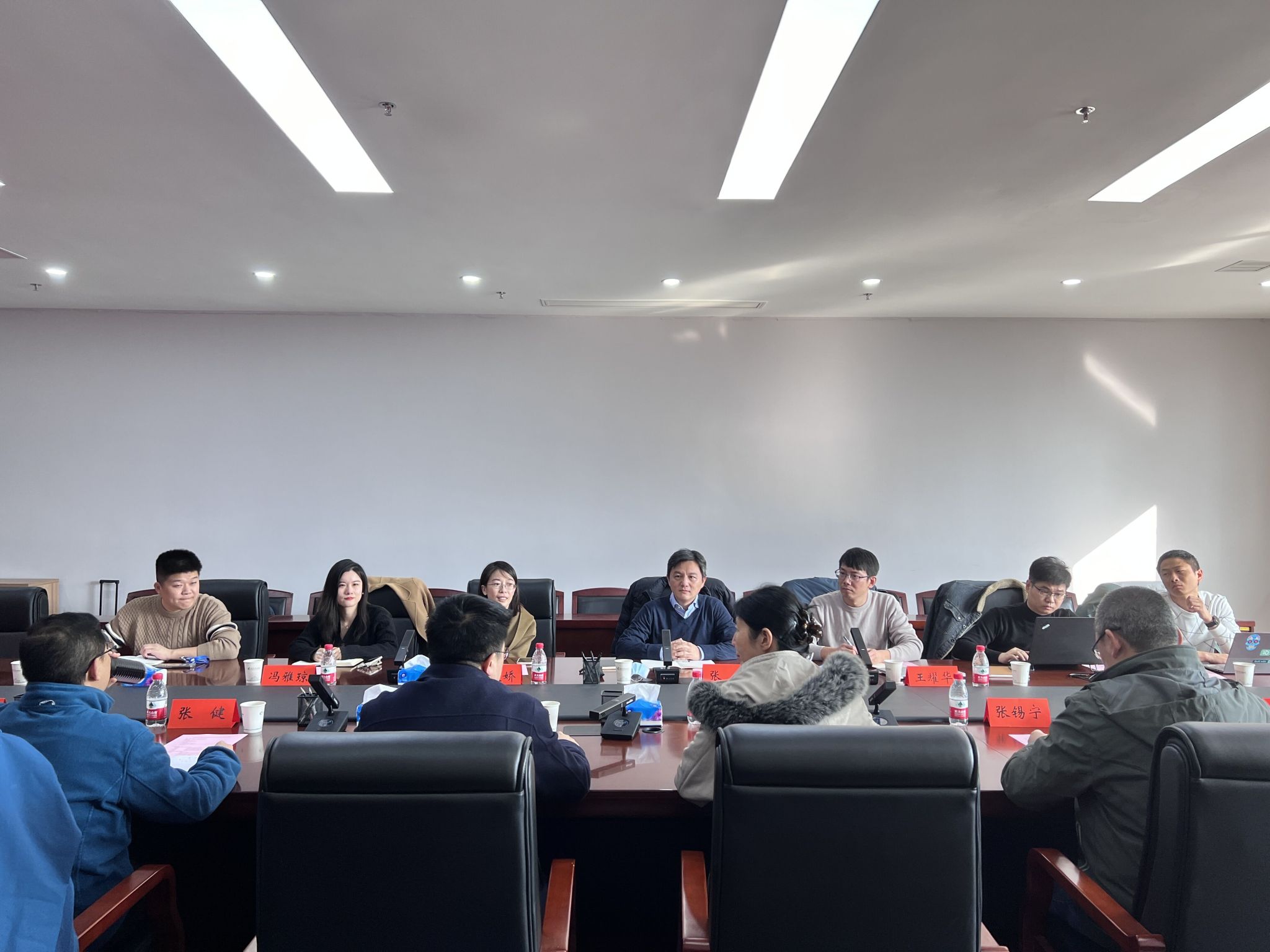 参会教师代表张健、张锡宁、王峰、李清安、陈金富分别发言介绍了自己的研究方向,提出了管理工作和研究工作中遇到的技术难题,并在科研合作和学生培养等方面提出了自己的合作想法。研究生办公室黄磊发言介绍了学院目前的研究生培养方案和校企联培项目。