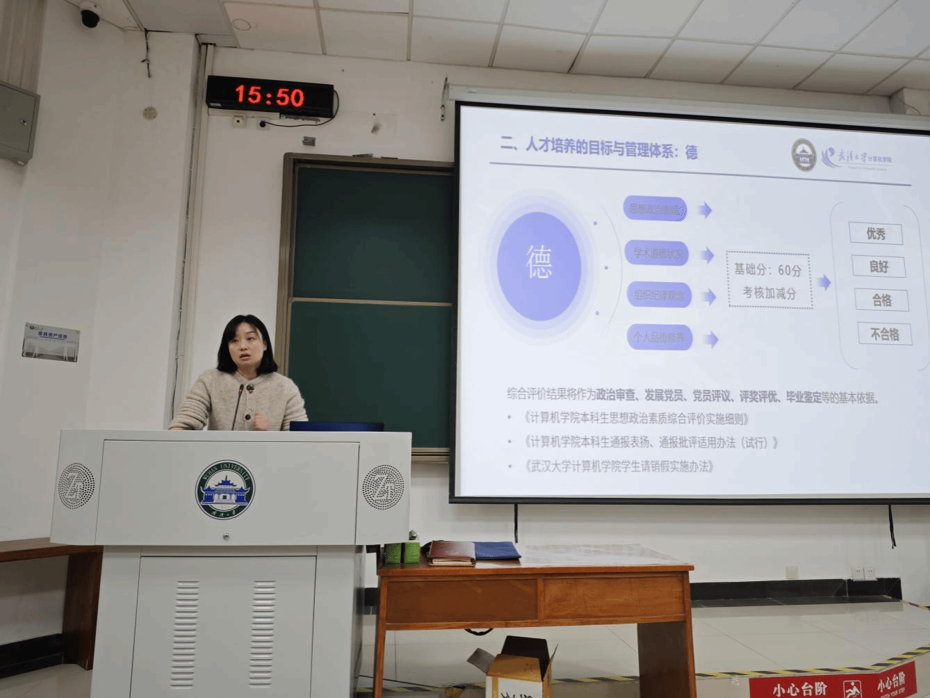 人才培养的主要目标和学生管理制度,鼓励各位“新”同学能够做到德、智、体、美、劳全面发展。金书记还细心地列举了同学们在学业、个人发展规划以及心理健康等方面可能会遇到的各种挑战和问题。她希望通过这样的方式,让“新”同学们对即将开始的学习生活有更全面的了解,从而能够顺利渡过适应期,增强对学院的归属感和认同感。