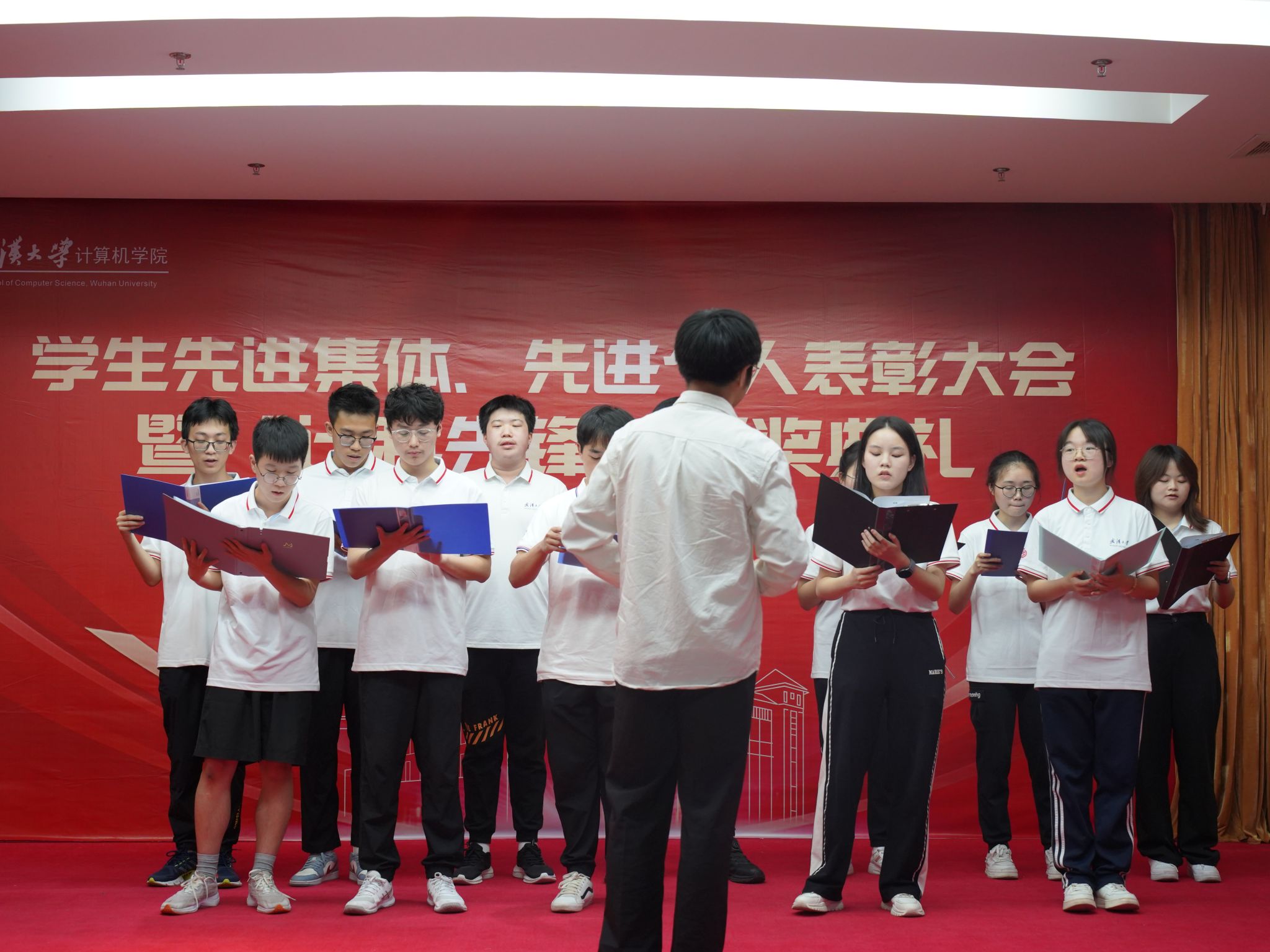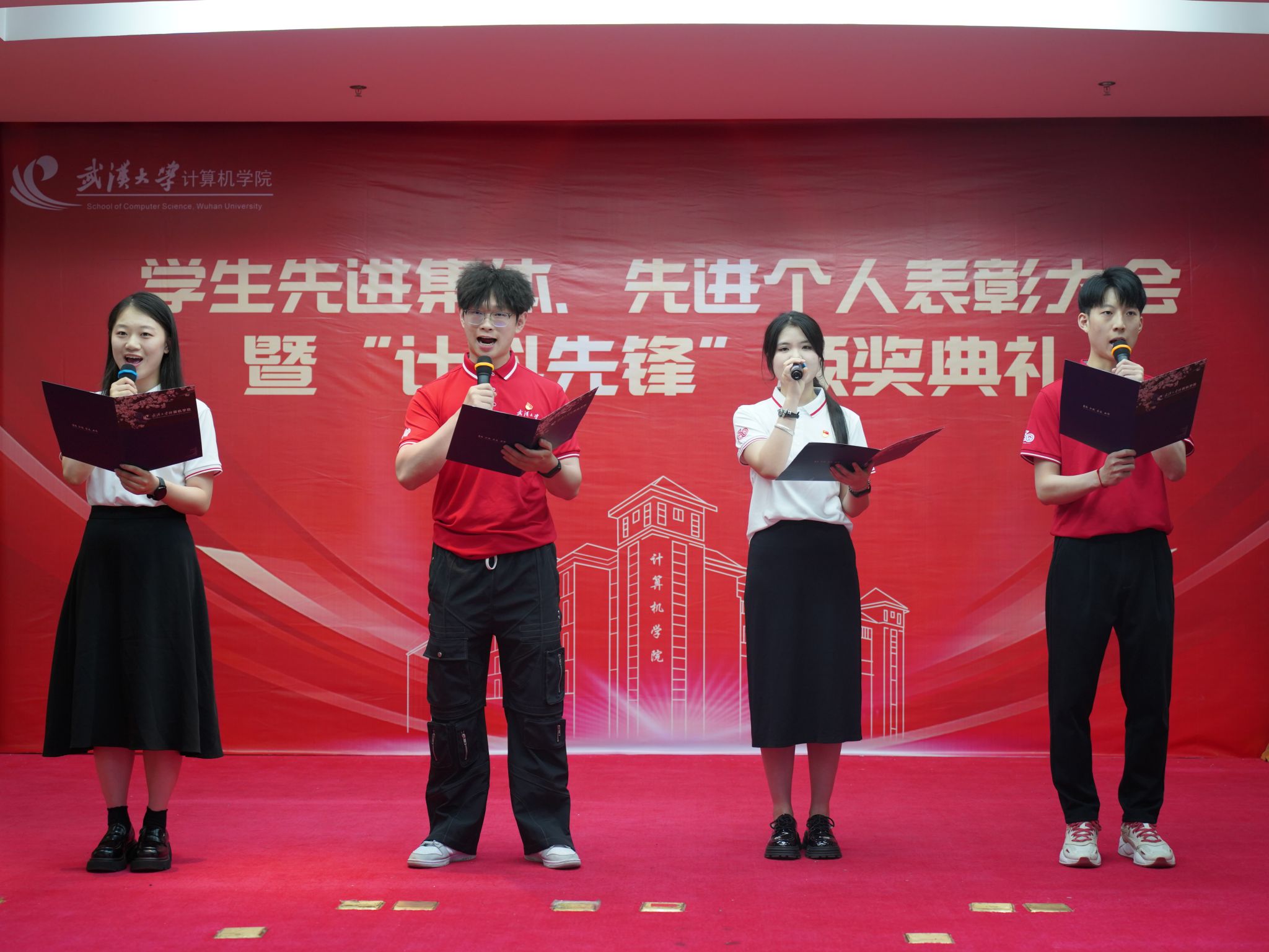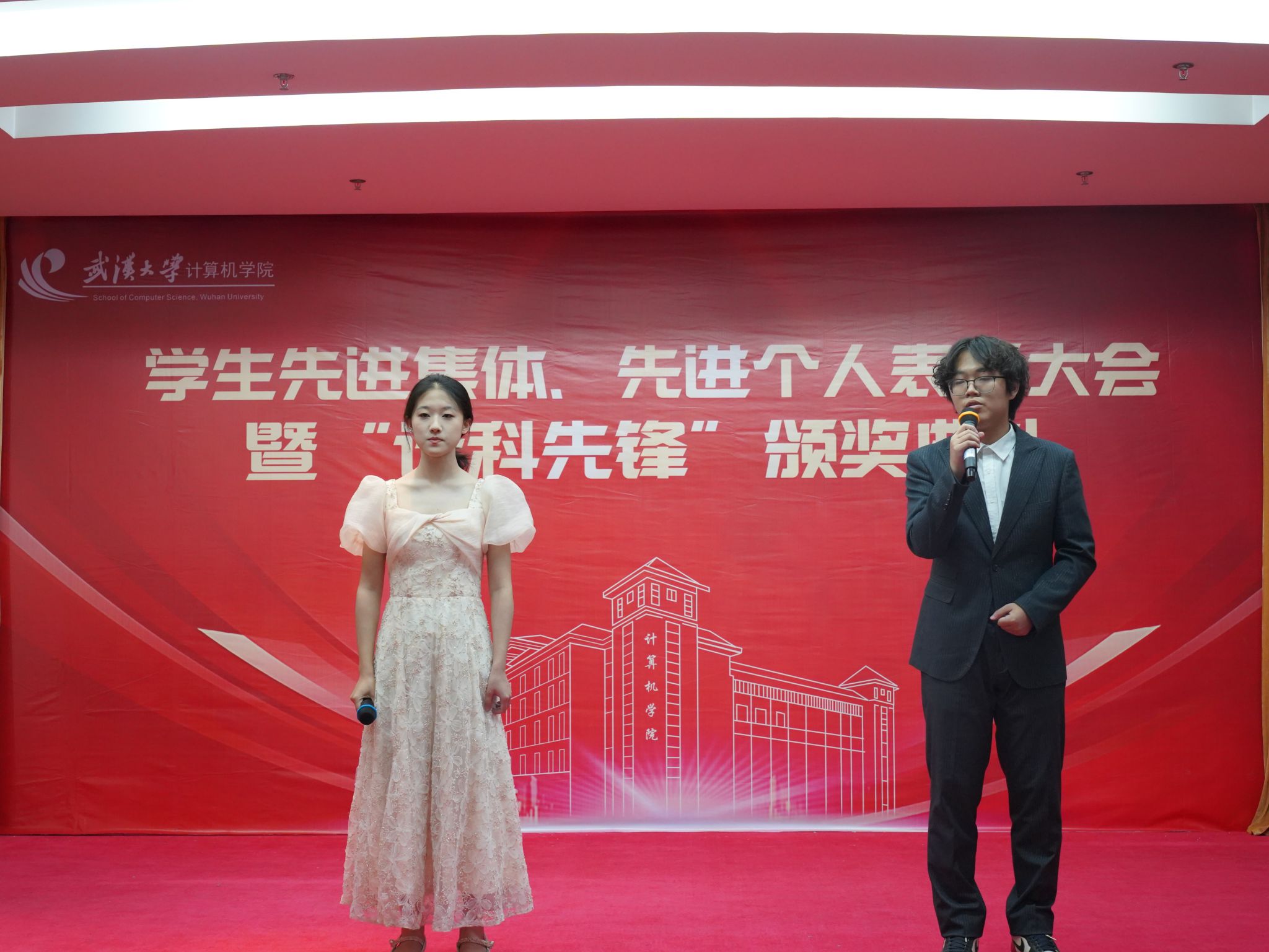 颁奖期间,研究生党员代表深情朗诵《英雄长征路》,誓言铮铮、声声嘹亮,激励计科青年继往开来,走好新时代长征路。本科生代表精心准备了歌曲对唱《如愿》,致敬先辈,砥砺前行。学生合唱团带来表演《有我》,展现了计科学子的青春风采。现场气氛热烈,催人奋进。