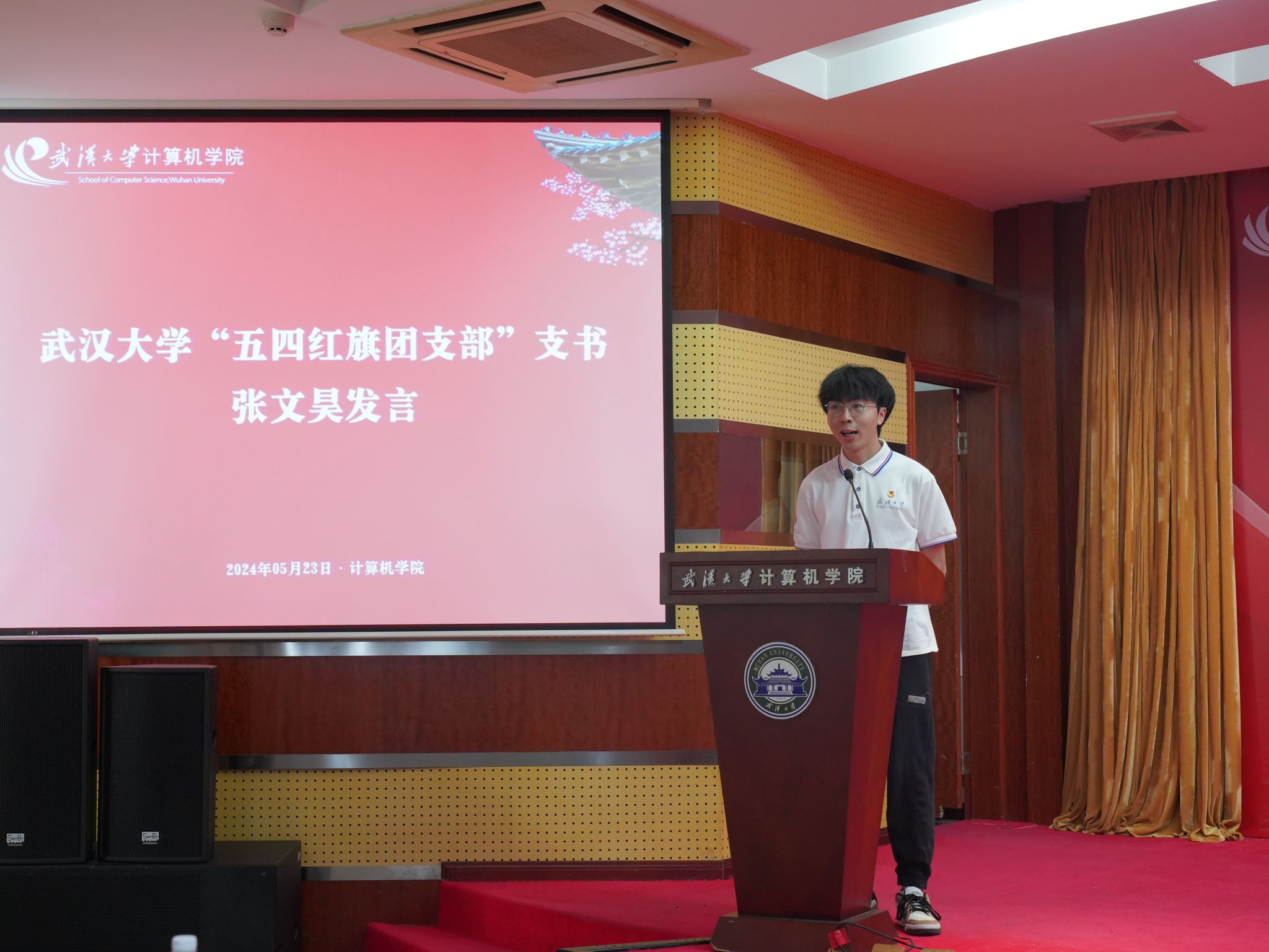 “五四红旗团支部”支书、2021级本科生张文昊分享了团支部建设的工作体会。他谈到,一年来,2021级软工8班团支部以思想引领为根本,以学风建设为抓手,以品牌活动为特色,取得多项优异成绩,努力营造更具凝聚力的团支部大家庭,力求充分发挥好先锋团支部的引领带头作用。