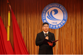 边金鸾代表学院党委致辞。她首先肯定了学院学生会一年来取得的工作成果。她指出,本次学代会在部分流程上进行了创新改革,旨在通过代表团成员的交流讨论,让同学们深入了解学院在教育教学、学生工作等方面的各项举措,发挥学生民主自治作用,增进学生的主人翁意识。她表示,希望学院学生会能进一步加强思想引领,提升工作水平,畅通交流渠道,做好学院和学生间的桥梁纽带,维护好同学们的权益,成为全员学子提升综合能力、自我培养锻炼的平台,为学院培养拔尖创新人才贡献力量。