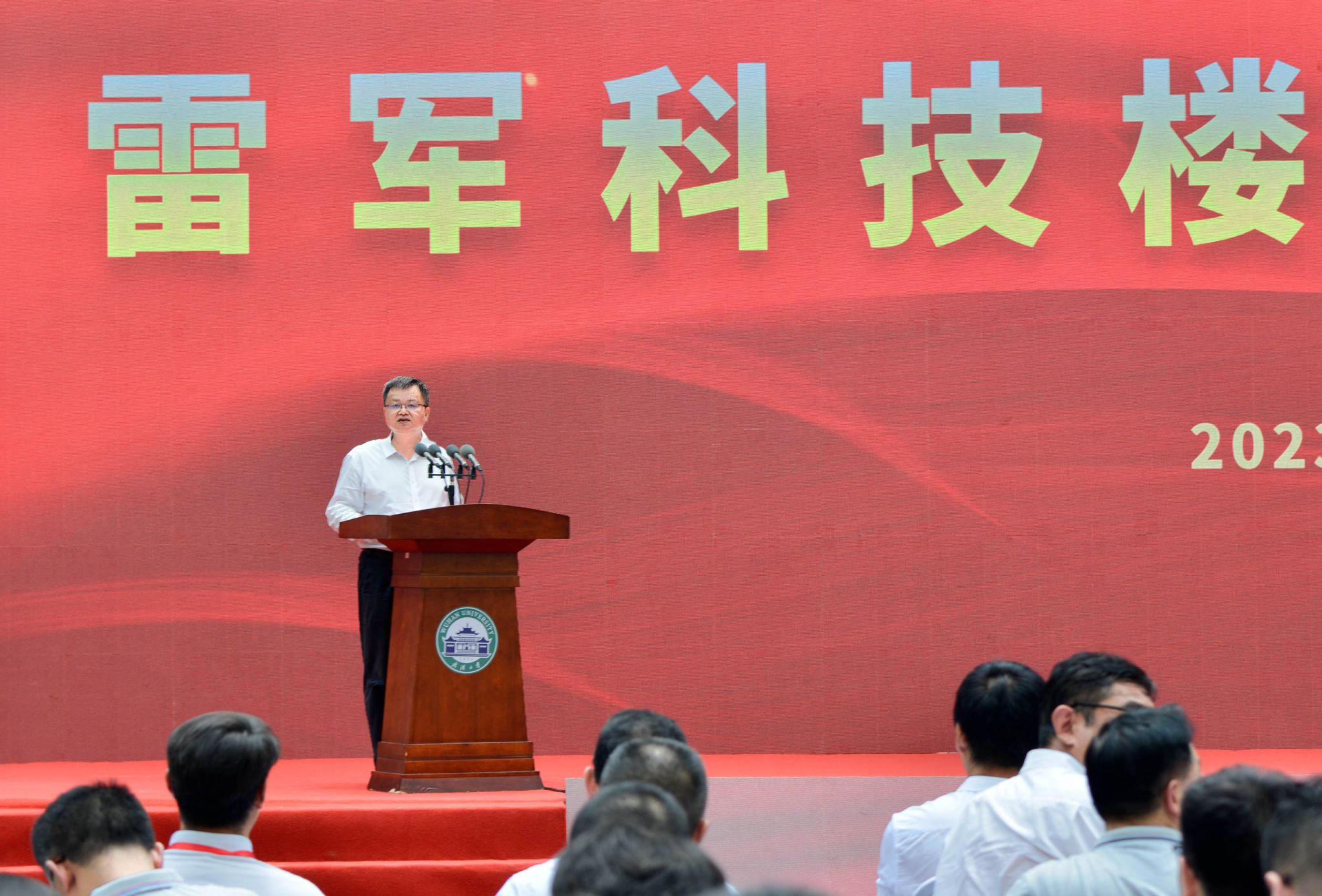 张平文致辞表示,“雷军科技楼对于武大学子来说是一份宝贵的财富,对于学校则是一份沉甸甸的责任和期待。期盼这栋现代化科研大楼成为学校在人工智能领域‘筑巢引凤’、培养拔尖创新人才的重要基地,成为开展跨学科前沿交叉研究的重要平台,以及完善创新机制、激发创新活力的重要堡垒。希望在不久的将来,这座楼里能引进一大批具有一流国际视野的顶尖创新人才、走出一大批德才兼备的拔尖创新人才、孕育出一大批前瞻性、创新型的高水平研究成果。”