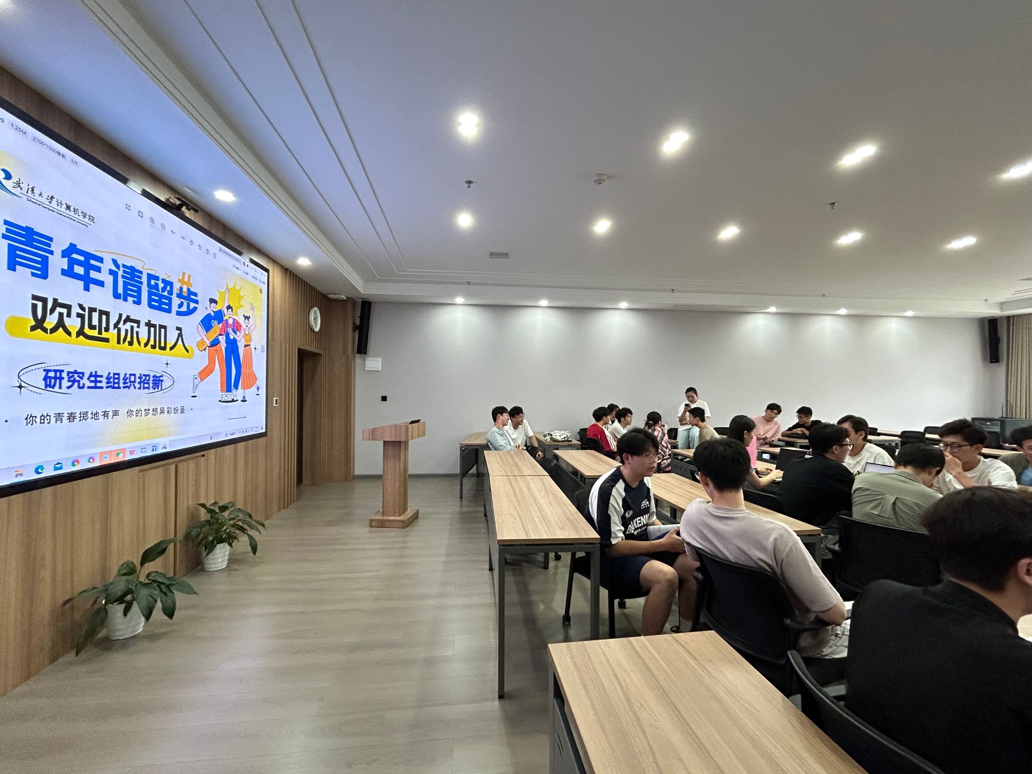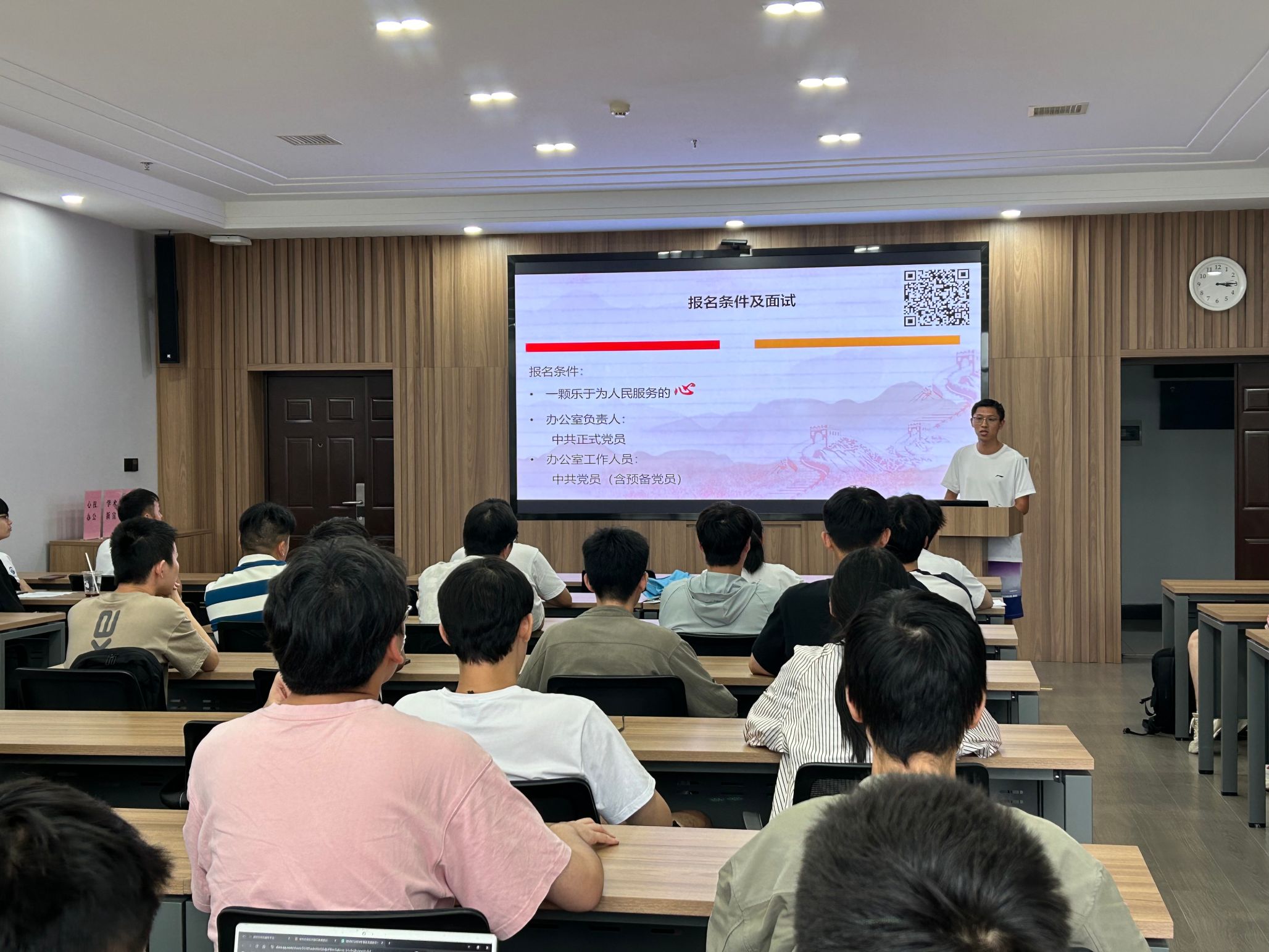 研究生党总支副书记刘笑,研究生团总支副书记蒋文韬,研究生会主席团成员余烨坤、卢思源、史珂,部门负责人,以及报名的同学共同参与此次宣讲会。会议由研究生辅导员史然、、张元老师主持。