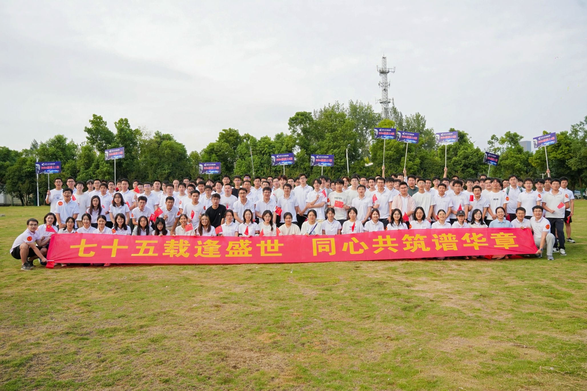研究生昂扬向上的精神面貌,同时献礼中华人民共和国成立七十五周年,2024年9月21日学院研究生办公室组织2024级研究生开展了一场主题为“七十五载逢盛世,同心共筑谱华章”的素质拓展活动。