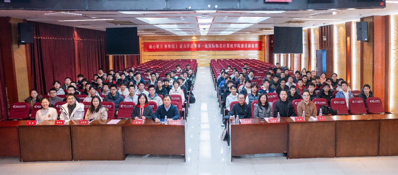 见面会结束后,陈小平在学院八楼报告厅为2024级特色班的全体同学们作了题为“大学 决定你的一生”的主题报告。在报告会现场,陈小平结合个人学习经历、创业经验等,向同学们介绍人工智能领域的前沿技术、发展趋势以及大学发展建议。其中他特别给同学们提出IQ、EQ以外的SQ,即:Social Quotient社交商数,鼓励同学们在大学要多外出实践、多与人交流,“3Q”理论的讲解与分析引发在场同学们的热烈讨论。