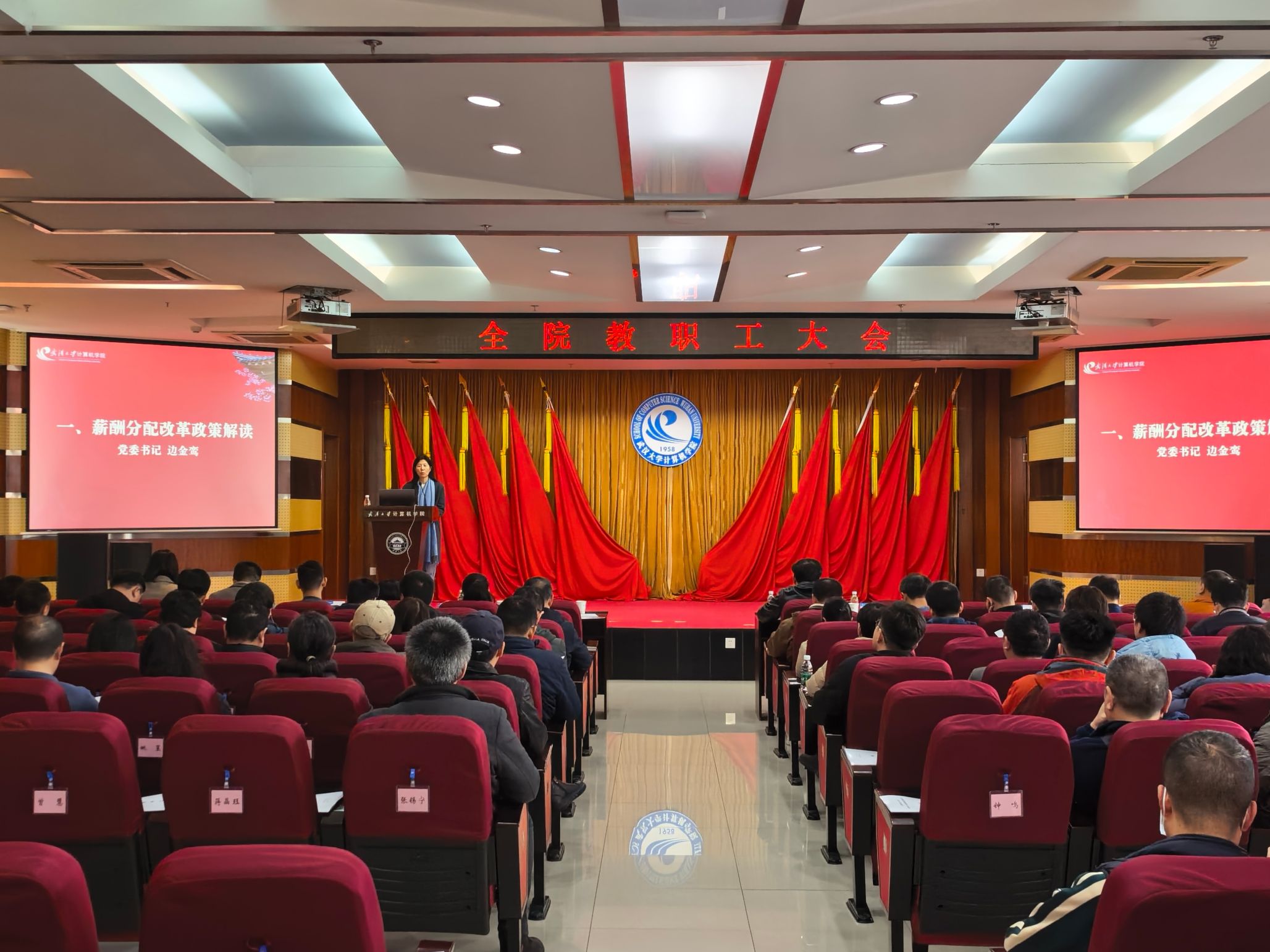 会上,党委书记边金鸾还就薪酬分配改革政策进行解读,副书记高卫松做公共服务与师德师风考核注意事项说明,副院长彭蓉做教学工作量考核政策培训。