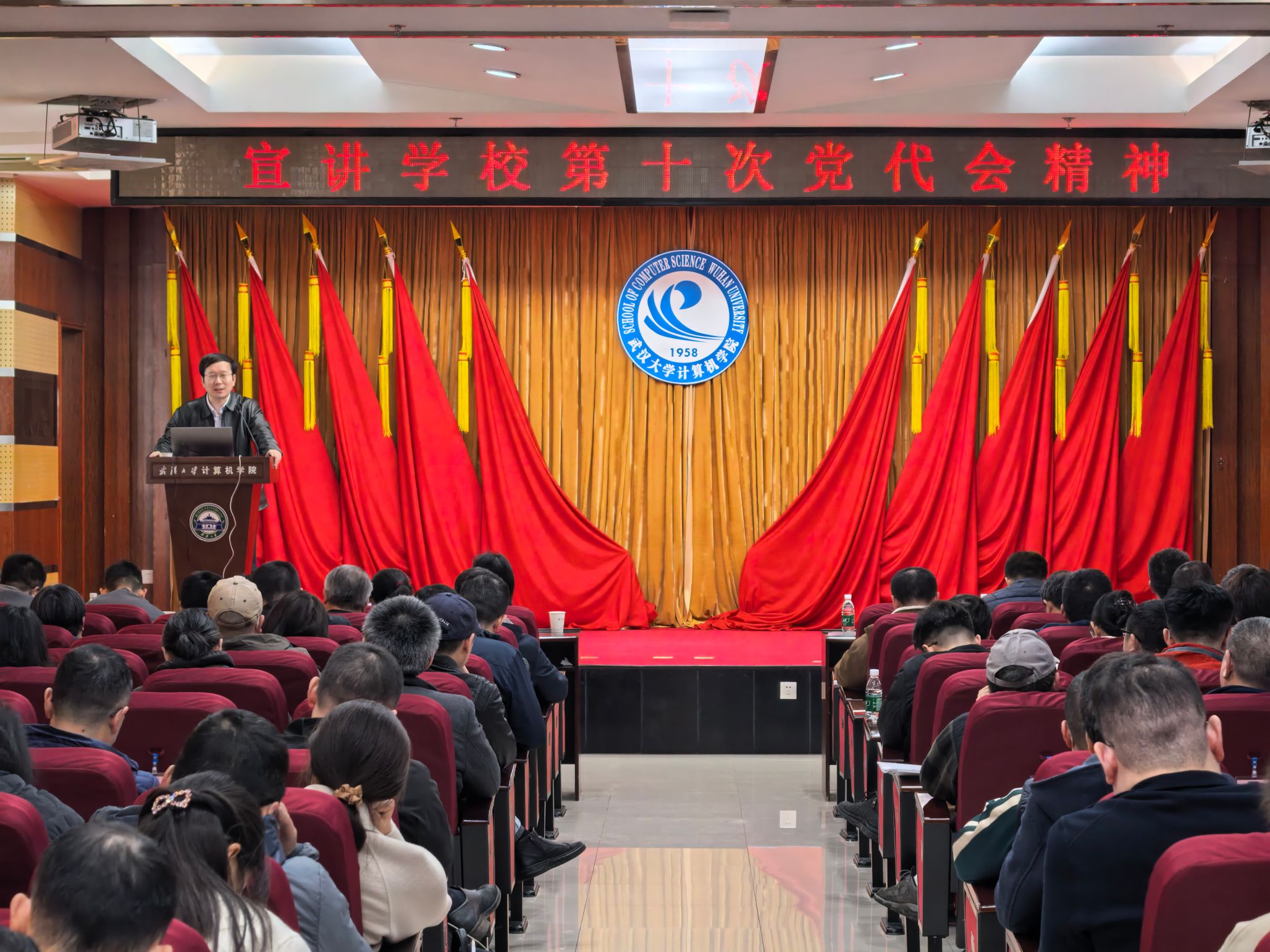 院长杜博以“牢记嘱托 勇担使命 奋力谱写中国特色世界一流大学建设新篇章”为题,从第九次党代会以来的工作,牢记嘱托、扛起新时代新征程的光荣使命,深化改革、激发勇创一流、奋进前列的强劲动力,加快建设中国特色世界一流大学的重点任务,筑牢引领学校事业高质量发展的政治保证五个方面,专题宣讲学校第十次党代会精神,引导全院干部职工持续深入学习贯彻习近平总书记重要回信精神,牢记嘱托、感恩奋进,守正创新、抢抓机遇,在加快建设中国特色世界一流大学的新征程中,在实现高水平科技自立自强和建设教育强国、科技强国、人才强国的大事业中,作出武大计科人的贡献。