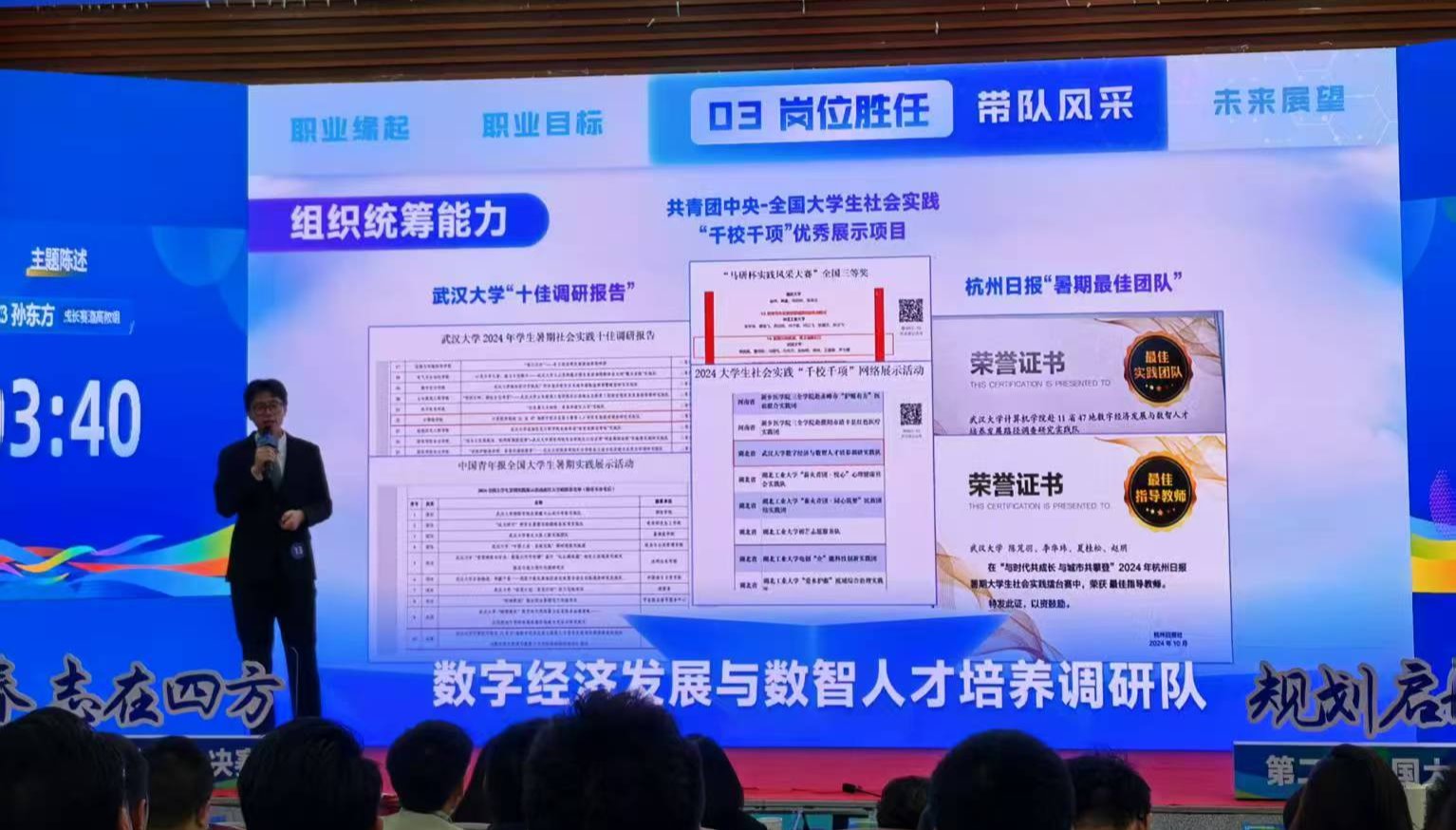 孙东方同学以“数智绘万象 算法映心境”为题,结合自身成长经历,坚持以雷军师兄为榜样,目标职业是想成为一名练就过硬本领、勇担时代重任的AIGC算法工程师。大学期间他一直跟随着王正教授积极参与到人工智能的研究实践中,始终坚持“科技不是高高在上,而是服务于人民”的信念,在专业实践中投身开发助农系统,在剑桥的暑期研学中将AI与中国传统文化结合。谈及未来规划,孙东方表示自己将立志做AI与实体经济融合的探索者,期待着用前沿技术温暖千家万户的烟火日常。