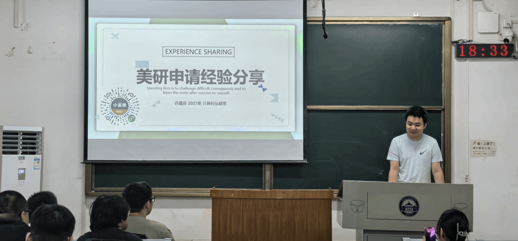 在信息学部一教-313举办“出国留学经验分享交流会”,邀请到前途出国留学导师陈欣淼和2021级计科专业谷嘉良同学为本科生解析留学与升学路径,吸引了各年级60余名同学参会。