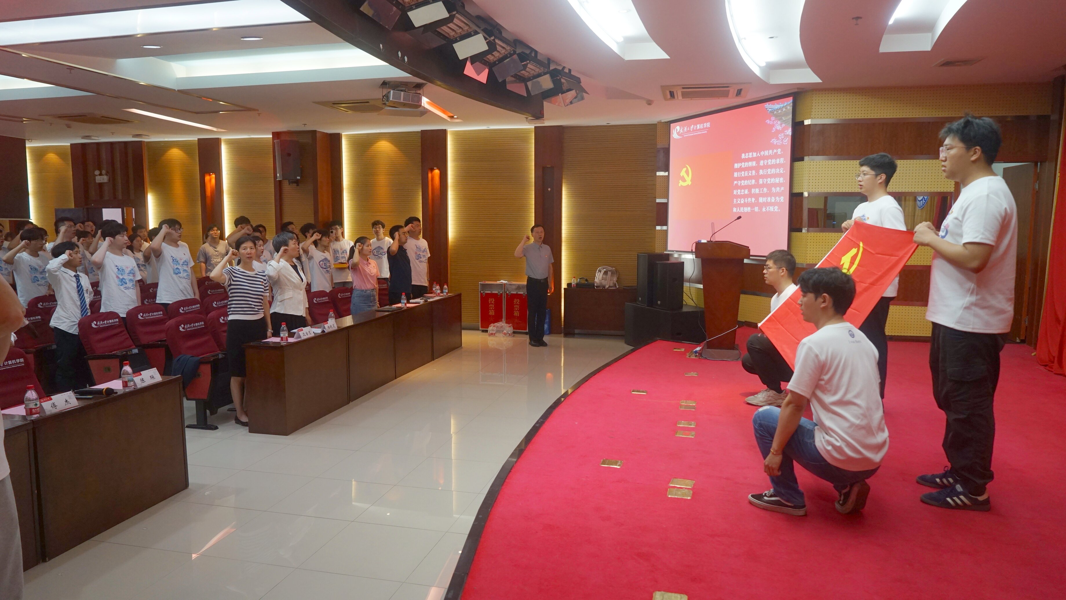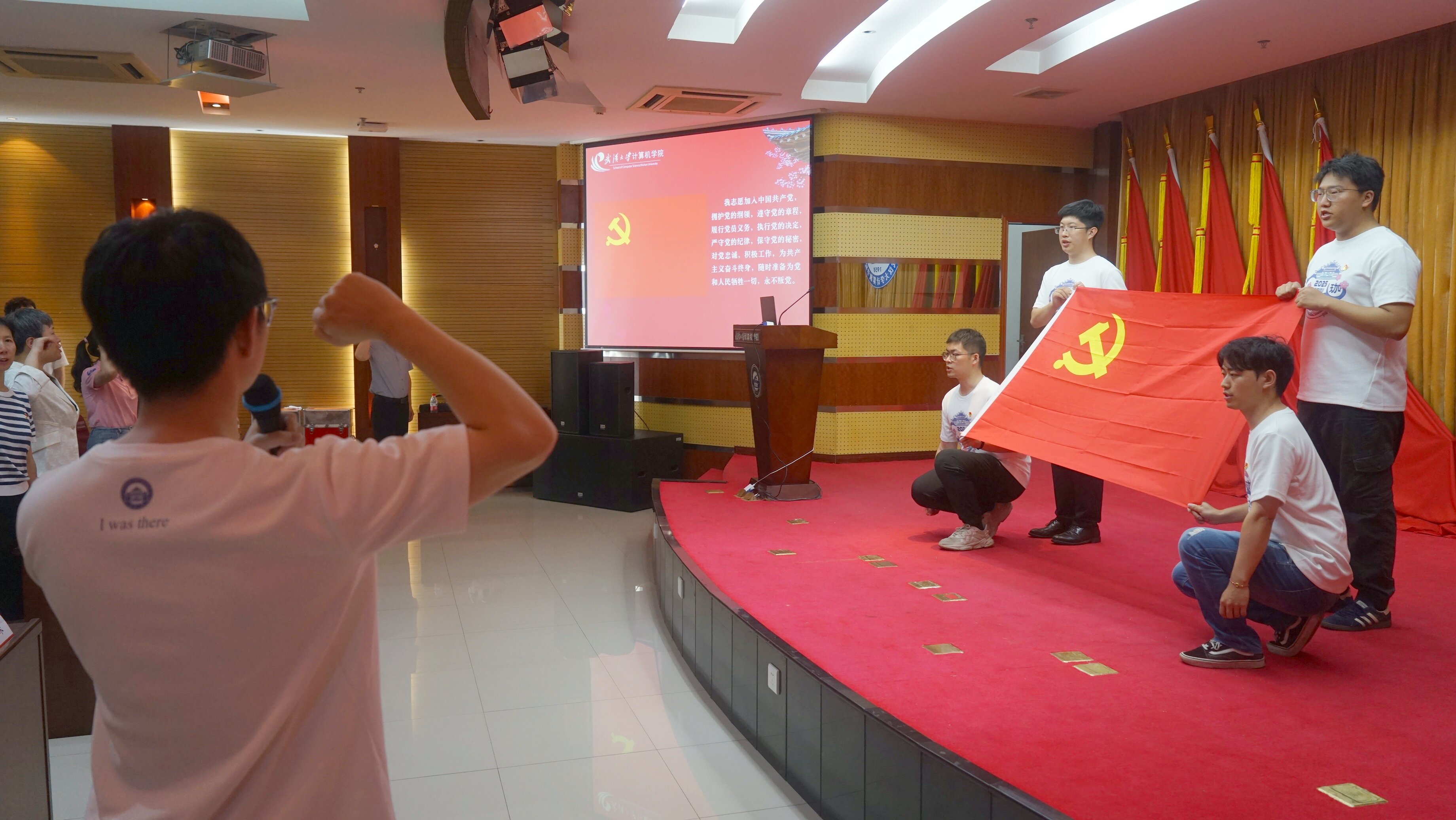 随后,与会党员在毕业生代表莫坤龙的带领下面向党旗重温入党誓词,“为共产主义奋斗终身”的誓言响彻会场,新党员同步完成入党宣誓,铮铮誓言铿锵有力,以赤诚初心锚定人生航向。