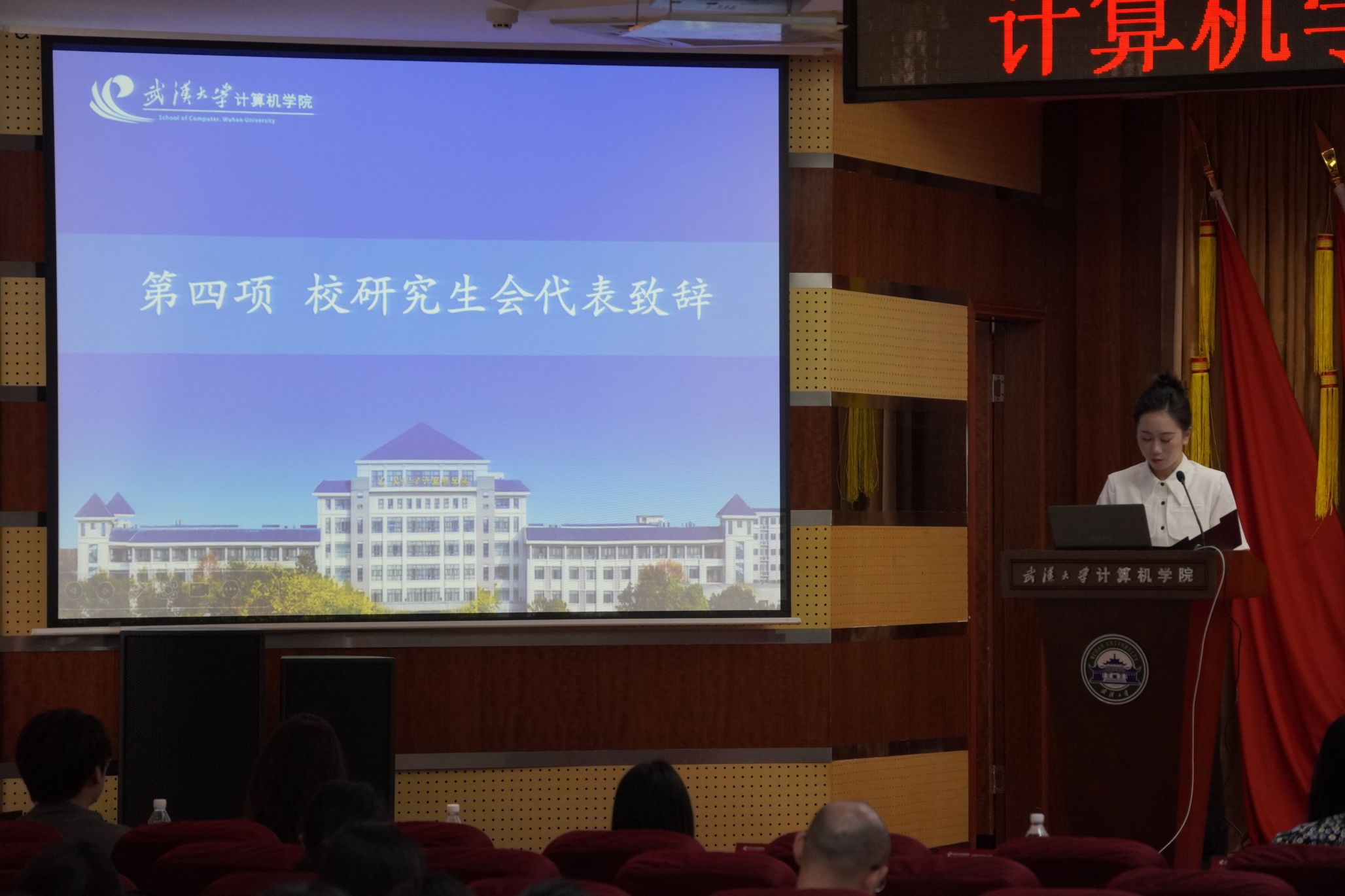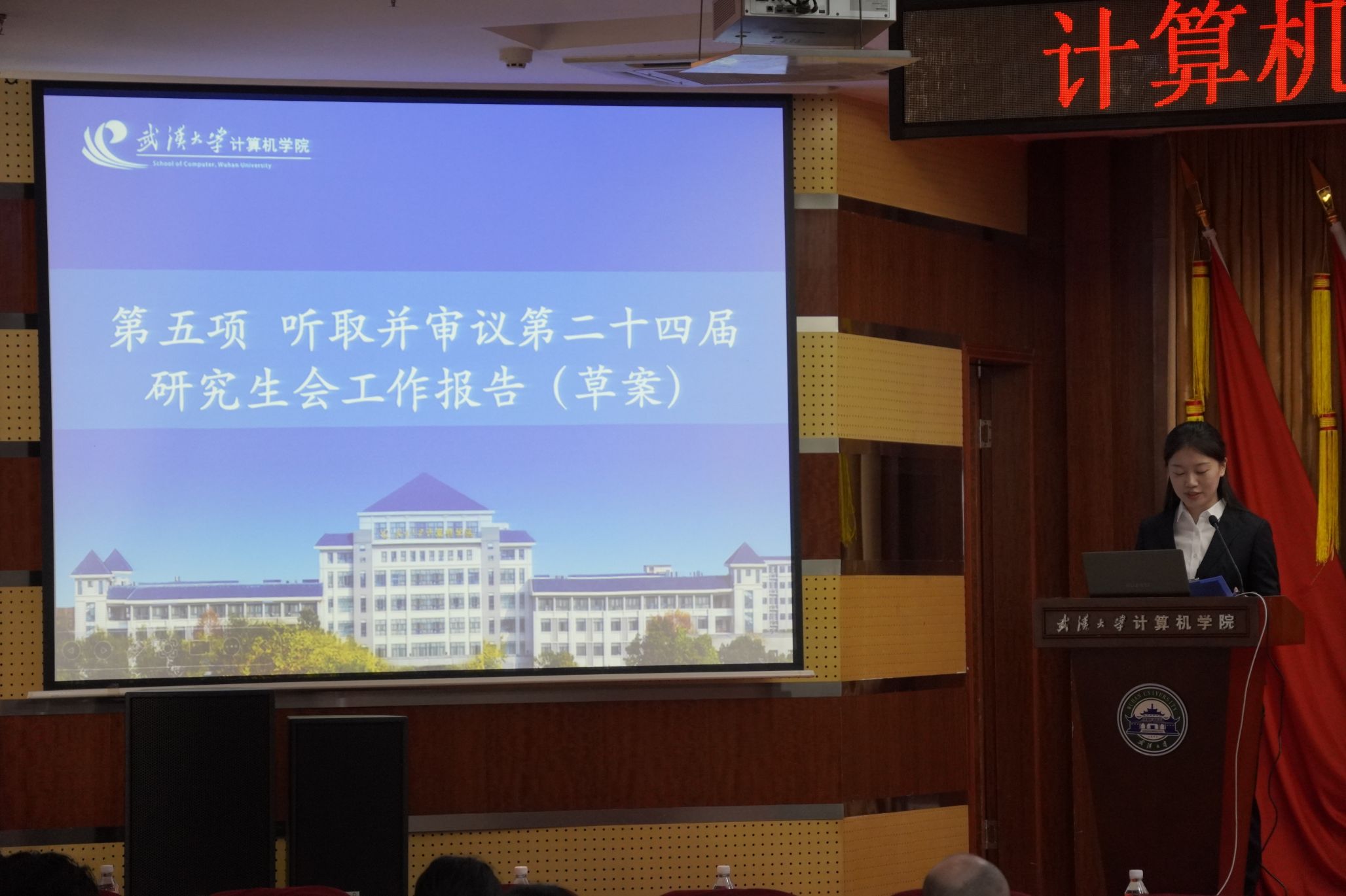 学院第二十四届研究生会主席团成员卢思源作题为《踔厉奋发启新程 笃行不怠向未来——以意气风发之姿赴时代奋进之约》的研究生会工作报告。她从“深化组织改革,提升服务效能”“筑牢宣传阵地,传递计科声音”“聚力学术科研,激发创新热情”“深化就业服务,推进实践育人”“心理关怀有温度,权益服务有效度”、“健康体魄显活力,多样文化展风采”六个方面对第二十四届研究生会工作进行了细致的回顾和总结,并对第二十五届研究生会提出四点建议:一是找准职责定位,坚持从严治会;二是凝聚多方合力,坚持守正创新;三是加强统筹规划,坚持有序推进;四是深化多元联动,坚持团结协作。
