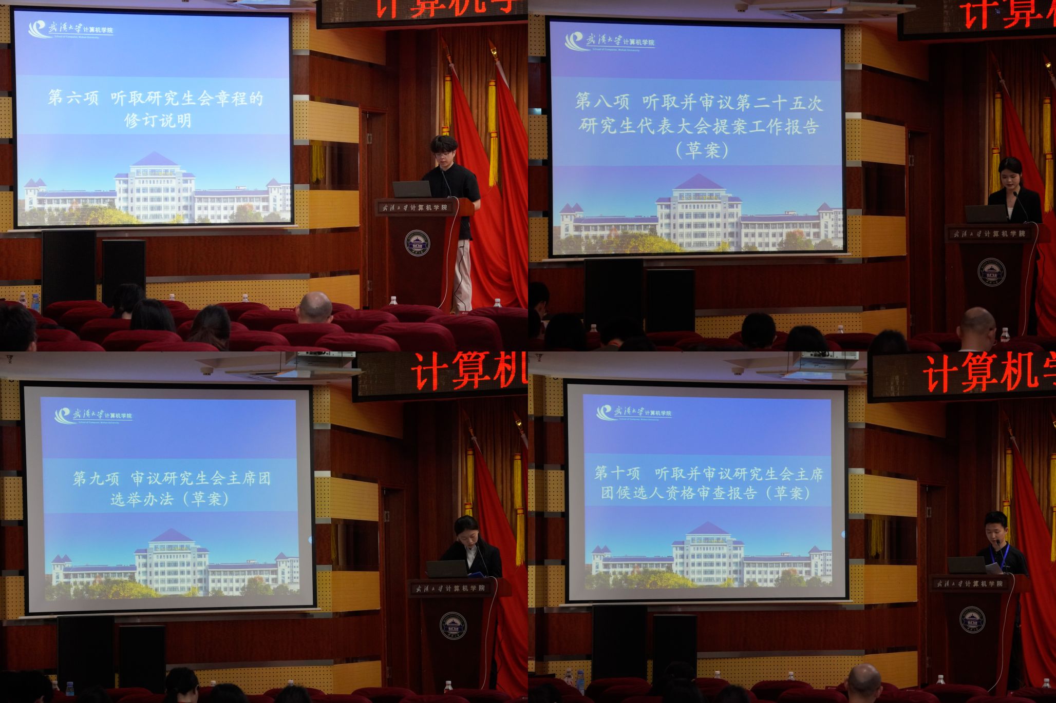 根据大会议程和有关办法,新一届研究生会主席团候选人王越、闫瀚、肖帆、杨丰源围绕个人经历、岗位认知以及未来发展等方面依次发表竞选演讲,并进行抽题答辩。