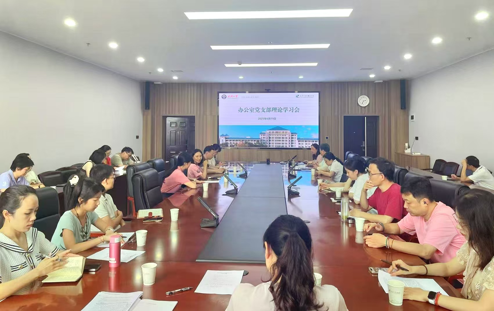 办公室教工党支部在B405会议室召开理论学习会,专题学习习近平总书记关于作风建设和精神文明建设的重要指示精神,开展警示教育并部署下一阶段重点工作。办公室党支部全体党员及党政管理人员参加会议,会议由党支部副书记张文俊主持。