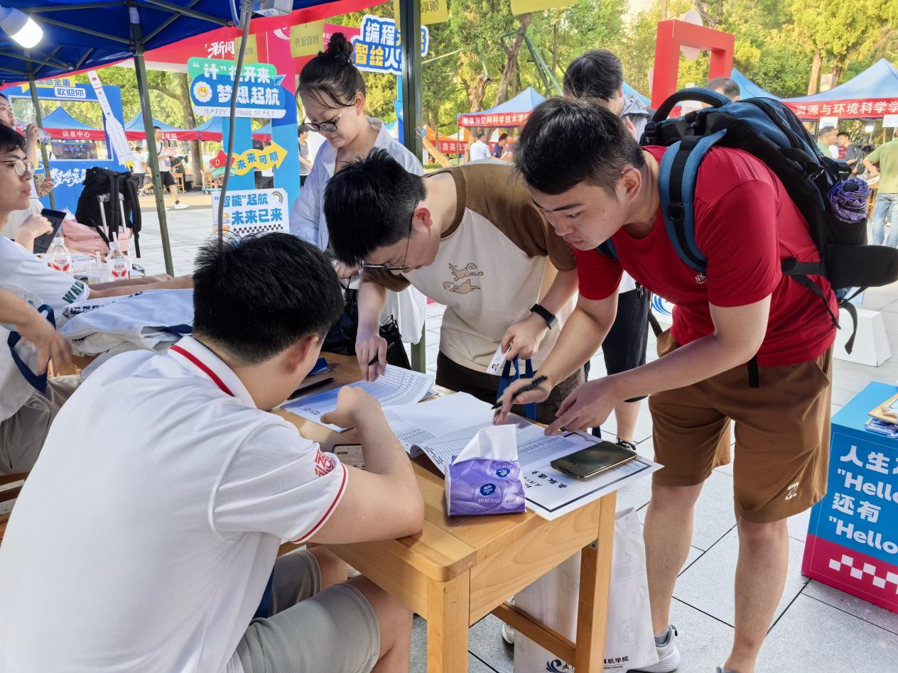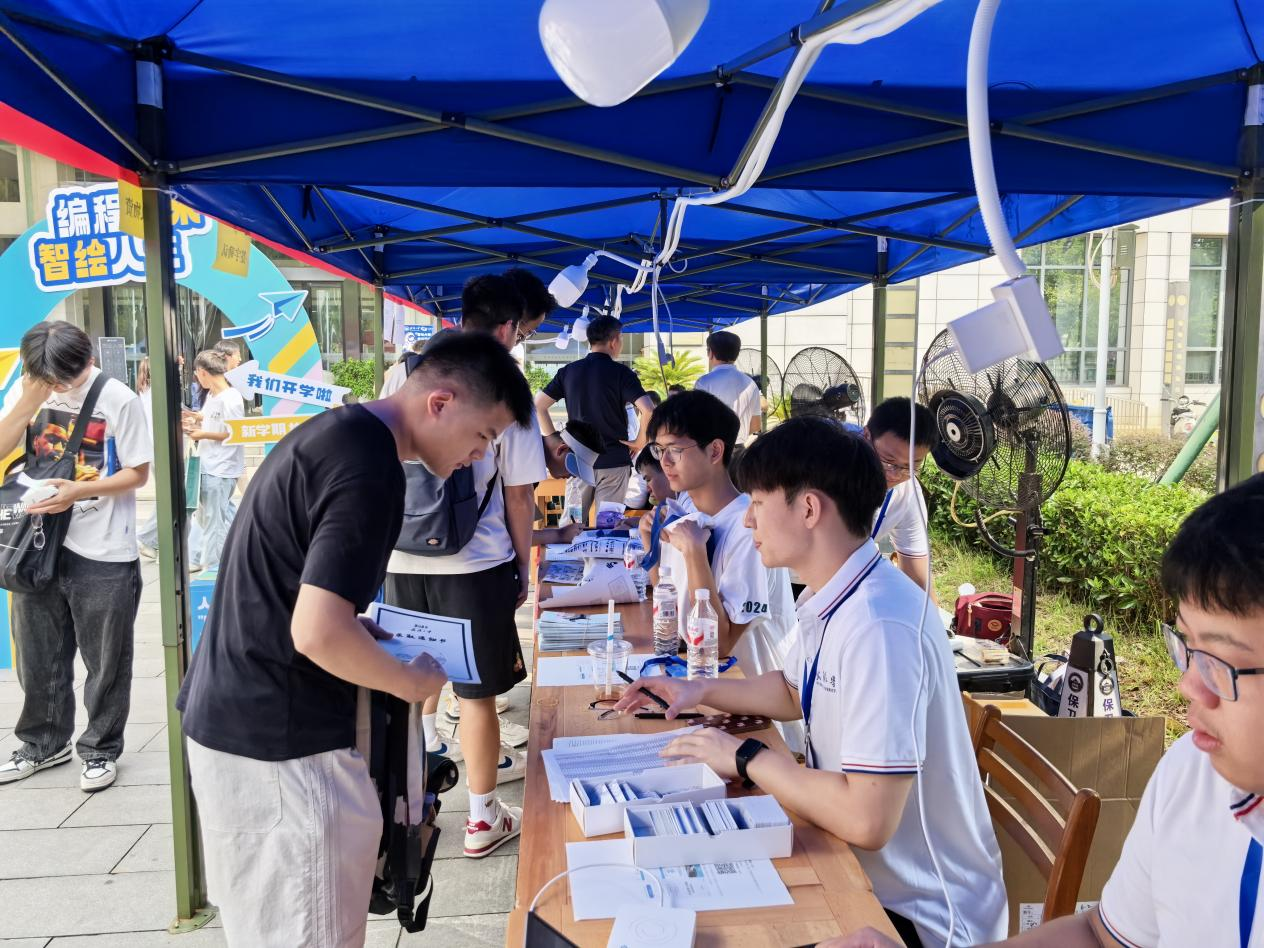 为保障迎新工作顺利开展,研究生辅导员和志愿者们一大早就在信息学部图书馆前集结完毕。搭帐篷、贴指引、摆礼包、调系统,一切井然有序,只为把“第一份温暖”准时送到新生手中。在志愿者的耐心引导下,新生们顺利办理相关手续,报到流程快速高效。在场师生第一时间为同学们解答报到遇到的各类问题,耐心细致的回应让新生和家长切实感受到学院的贴心关怀与融融温度。