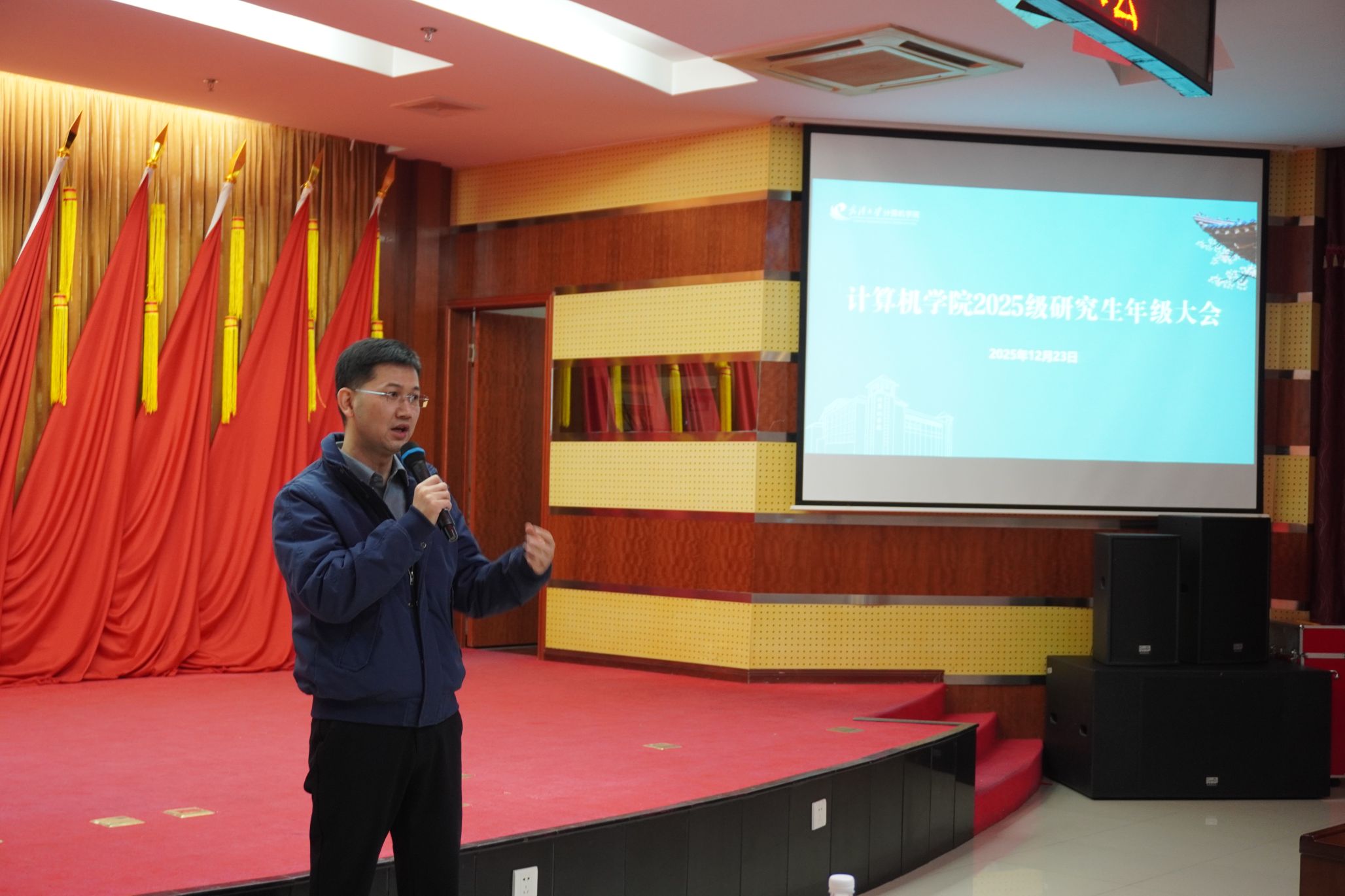 会议伊始,何德彪院长以 “从‘接受知识’到‘创造知识’的蜕变” 为主题开讲,希望同学们把握从 “跟随者” 到 “探索者” 的关键转变,拓展学术视野、锤炼创新能力。他勉励全体研究生永葆好奇心、培养批判与独立思考能力、直面挫折成长、学会合作聚力、平衡学术与身心健康, “以好奇为灯、以坚韧为舟”,在学术沃土潜心钻研。