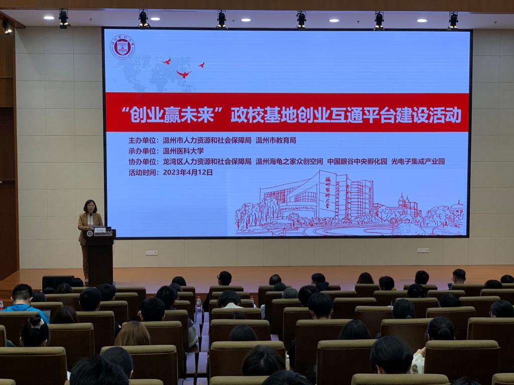 4月12日下午,“创业赢未来”政校基地创业互通平台建设活动85porn 专场在学校生物医药科研楼二楼学术报告厅举行。市人力资源和社会保障局就业创业管理服务中心副主任朱芳,市教育局高教处干事洪佳琳,龙湾区人力资源和社会保障局副局长王宋余,以及温州海龟之家众创空间、中国眼谷中央孵化园等负责人员参加会议,学校创业导师、毕业生代表、众创空间负责人等200余人参加活动。